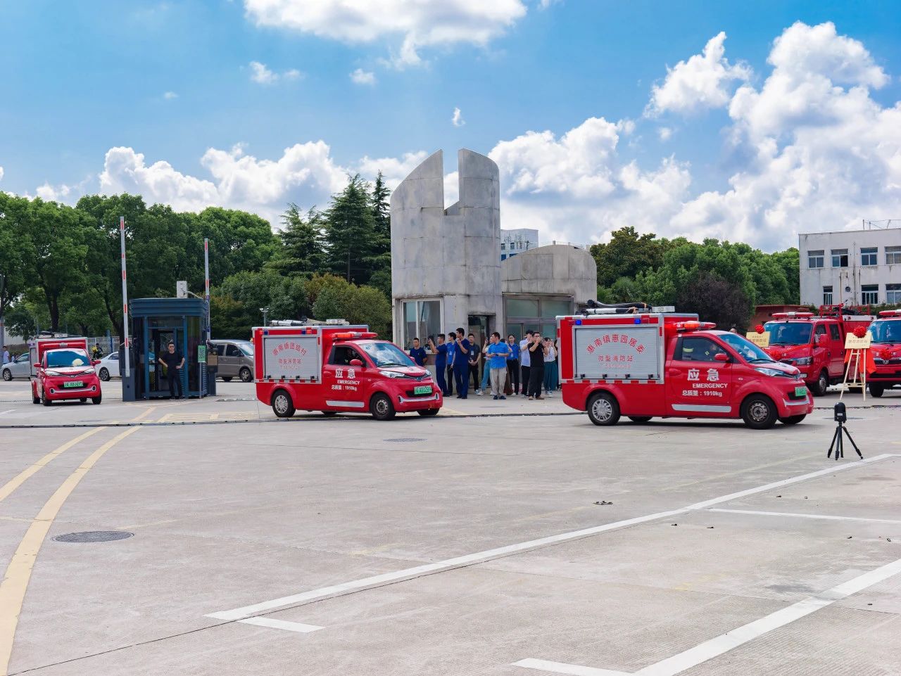 9:00綜合演練開(kāi)始前,浦東新區(qū)消防救援支隊(duì)支隊(duì)長(zhǎng)姜亦山、副支隊(duì)長(zhǎng)吳新、惠南鎮(zhèn)黨委書(shū)記江臻宇、黨委副書(shū)記、鎮(zhèn)長(zhǎng)楊揚(yáng)共同為兩個(gè)微型消防站揭牌,隨后領(lǐng)導(dǎo)們觀看了微型消防站配置的消防車(chē)輛和滅火救援器材展示。