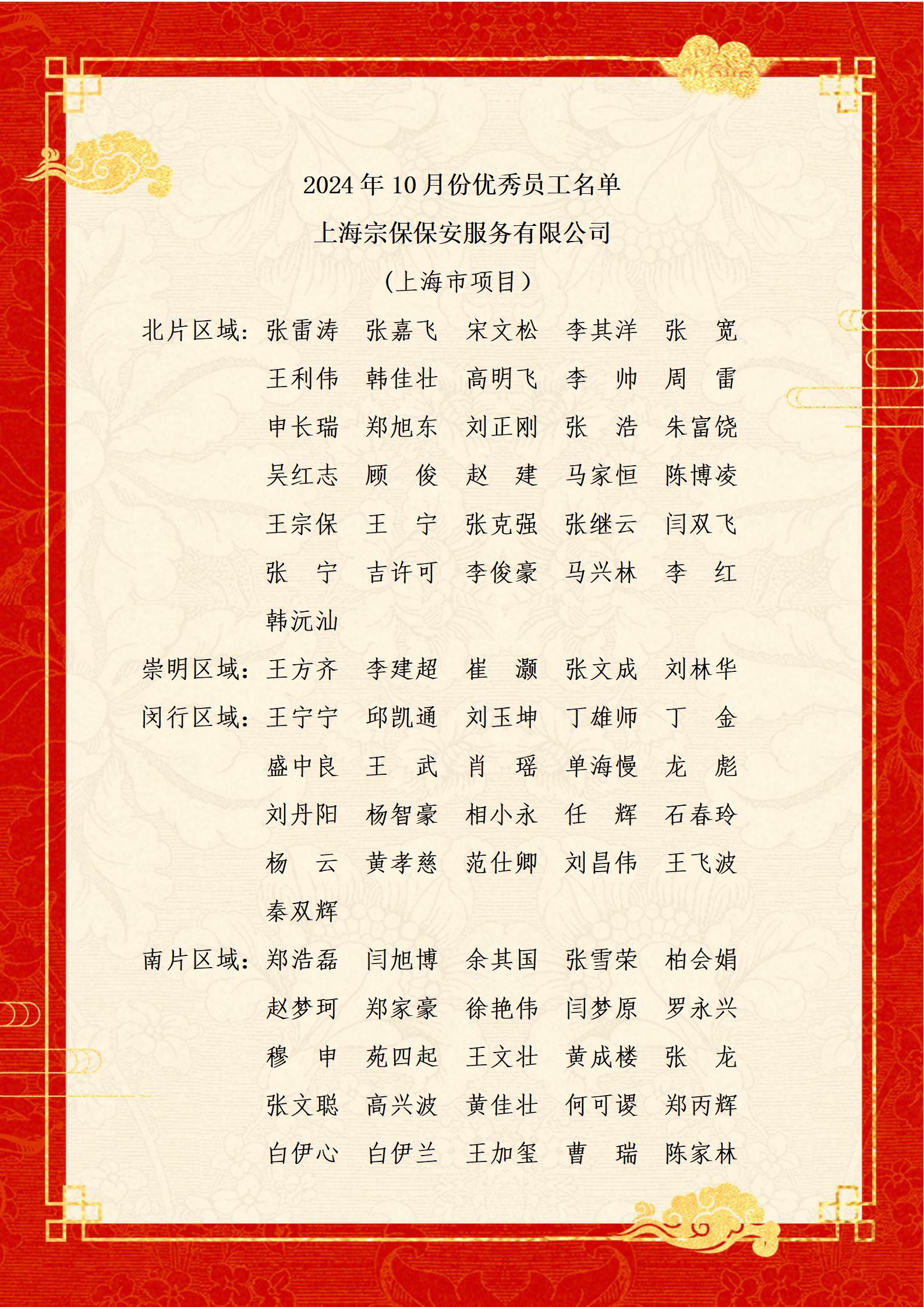 10月份,公司廣大員工根據(jù)甲方的任務要求,按照公司的部署安排,積極踐行公司“誠信為本 服務至上”的經(jīng)營理念,勇于擔當、善于作為,助力完成了2024斯巴達勇士兒童賽杭州站等多個大型活動臨時保障任務,參與聯(lián)建的社區(qū)微型消防站協(xié)助撲滅了2起火情,全力配合甲方做好了城市管理輔助、治安巡邏聯(lián)防、物業(yè)服務保障、生態(tài)環(huán)境保護、高鐵線路巡防等工作。期間,涌現(xiàn)出了一批盡心履責、崗位建功、拾金不昧、熱心助人的優(yōu)秀員工和先進典型。