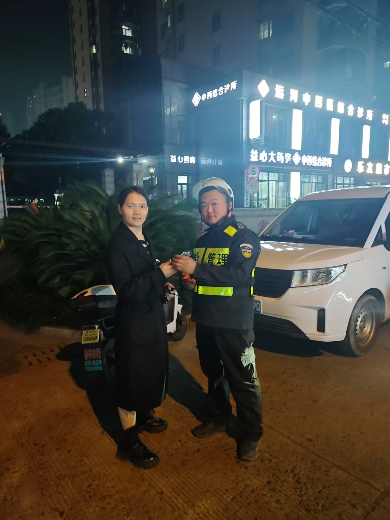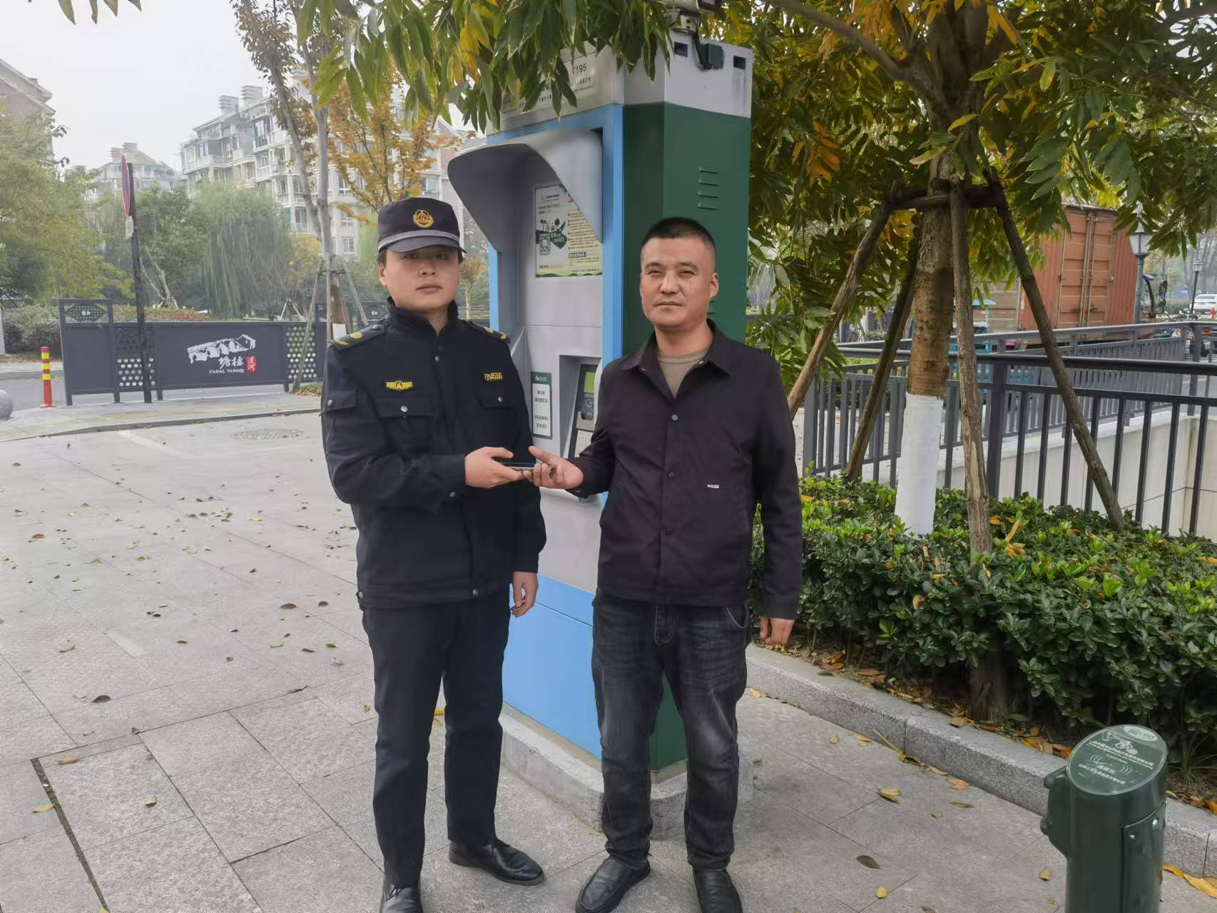 11月22日20:32,浙江民泰公司駐杭州市臨平區(qū)東湖市容項目員工張鑫在杭機路巡查時,撿到一部OPPO手機,詢問現(xiàn)場無人認領后,便將情況報告了當班組長,并按指示在原地等待失主。