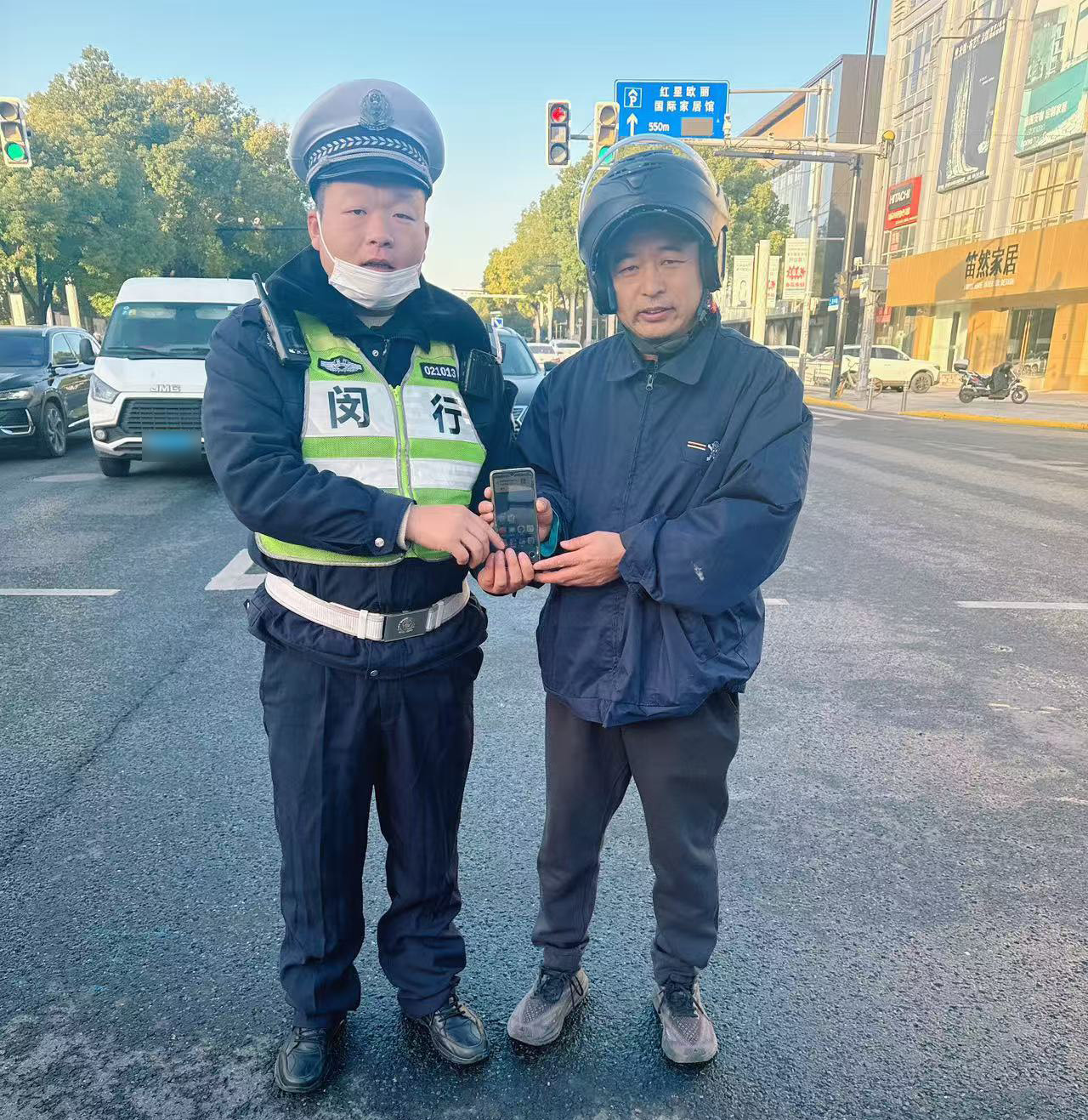 過了一會,手機鈴聲響起,一位自稱是失主的男士打來電話尋找手機。丁雄師了解相關情況后,便告知該男士到吳中路虹許路路口交警崗亭認領。