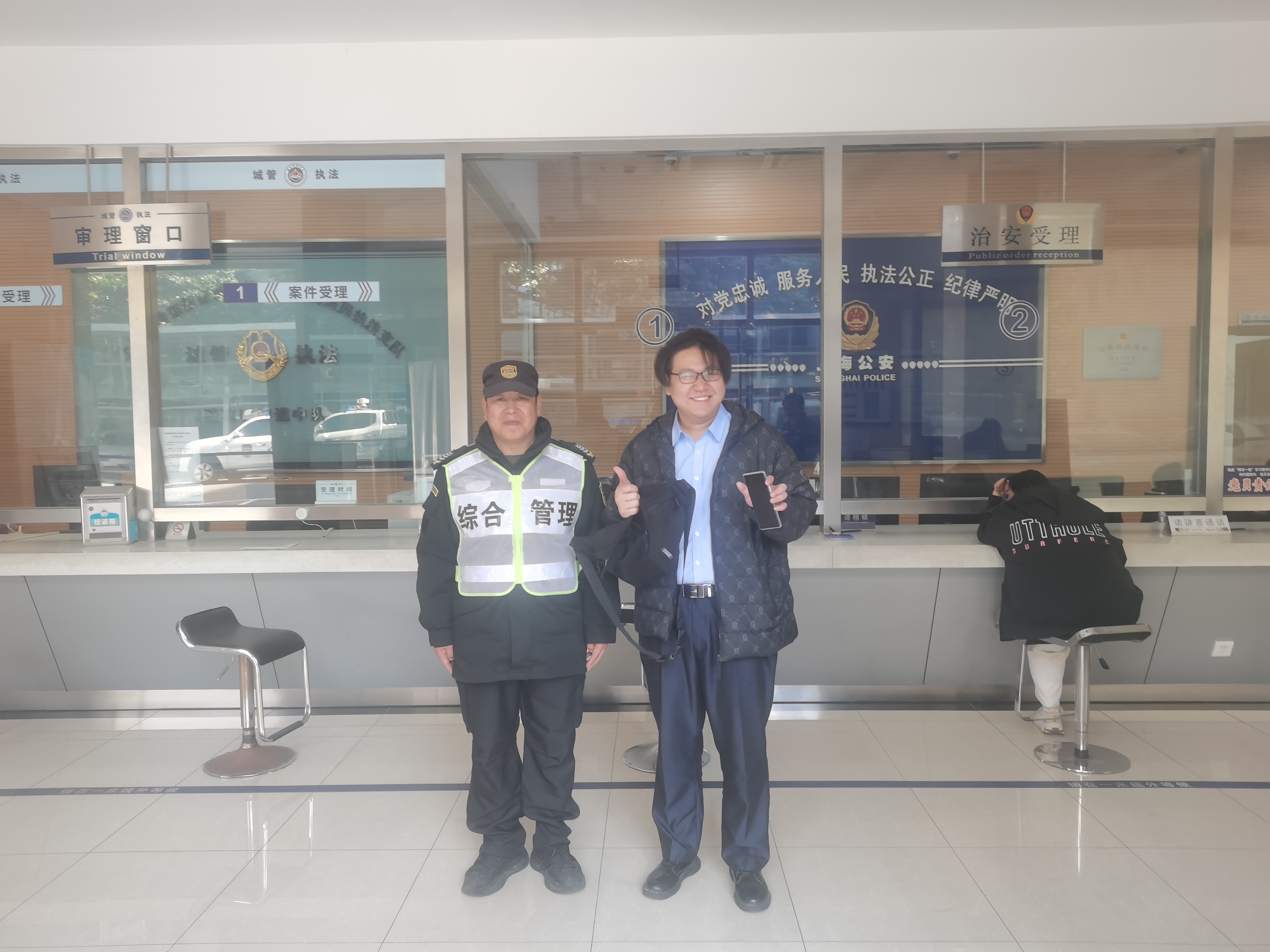 宗保公司駐閔行區(qū)虹橋交管輔助項目員工撿到手機交還失主