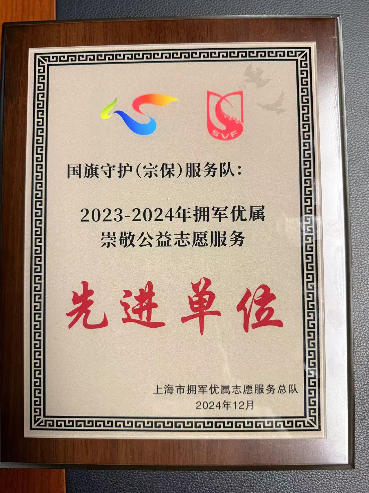 12月30日,上海市擁軍優(yōu)屬崇敬志愿服務(wù)總隊(duì)召開2023年至2024年工作總結(jié)交流表彰大會(huì),國旗守護(hù)(宗保)服務(wù)隊(duì)被評(píng)為2023—2024年擁軍優(yōu)屬崇敬公益志愿服務(wù)先進(jìn)單位。