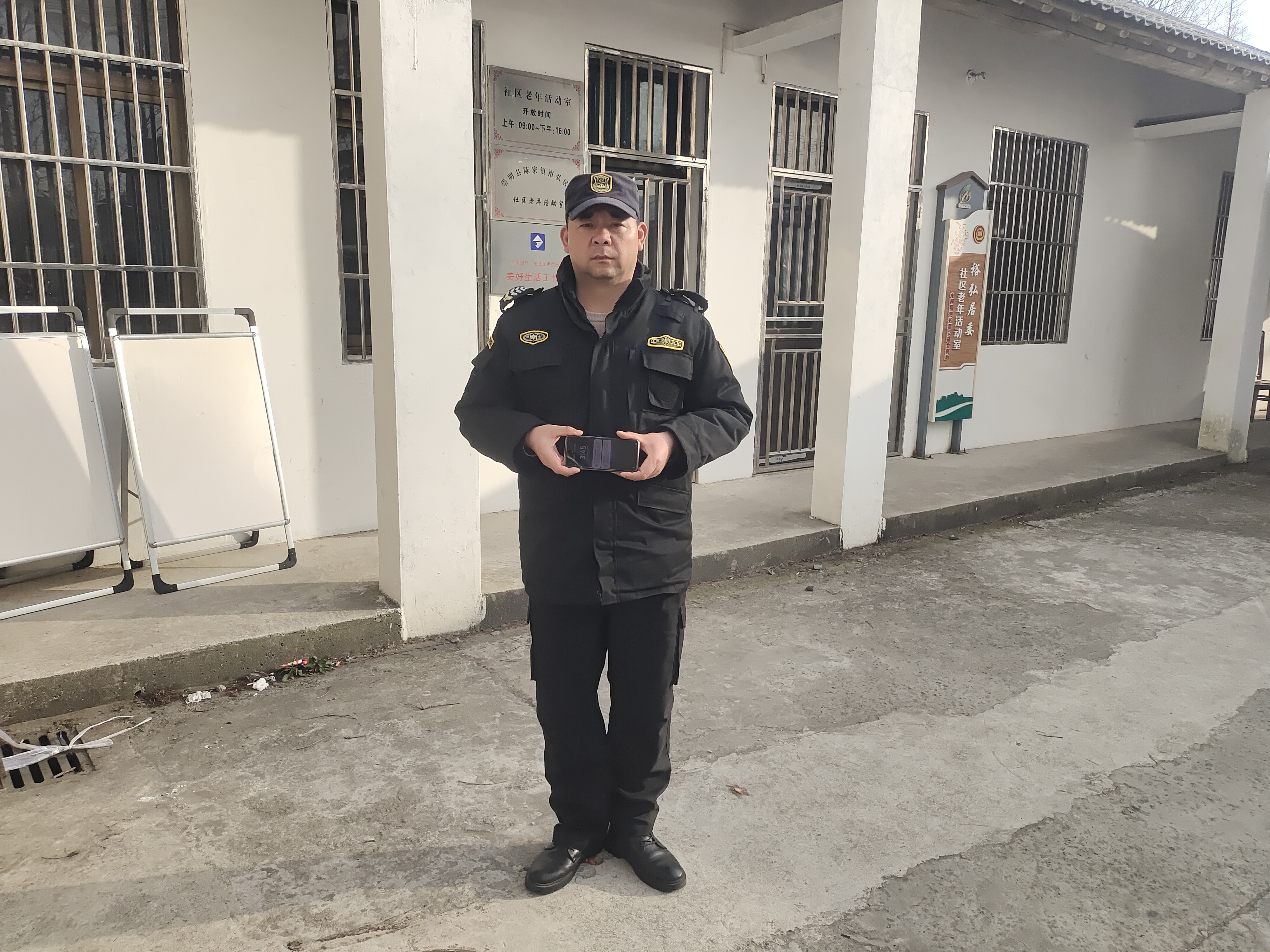 1月17日10:30,宗保公司員工周會(huì)達(dá)在參與浦東新區(qū)康橋鎮(zhèn)康城學(xué)校門崗臨時(shí)保障時(shí),撿到一部榮耀手機(jī),報(bào)告項(xiàng)目隊(duì)長(zhǎng)后,就按指示將手機(jī)暫放保安亭保管。