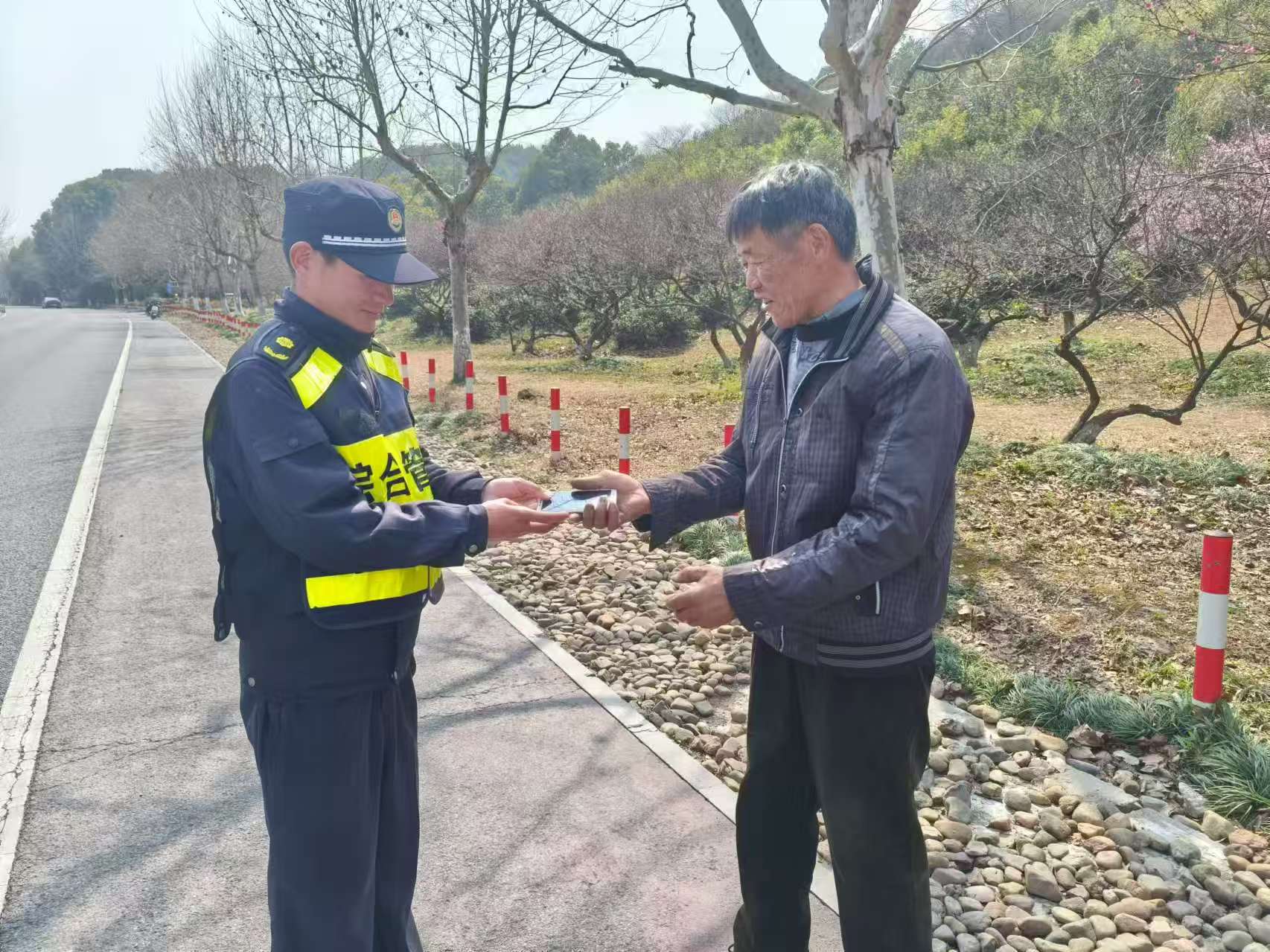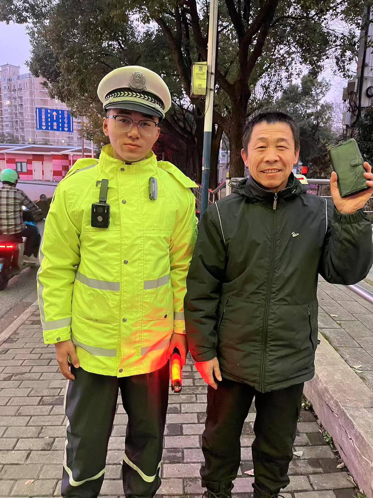 3月22日晚20:30,浙江民泰公司駐杭州市余杭區(qū)五常街道市容項目員工高鵬琪和梁雷陽在五常街道夕佳弄與荊長路交叉口巡邏時,撿到一件深灰色外套,衣服口袋內(nèi)裝有鑰匙和若干現(xiàn)金。兩人立即將情況報告給帶班組長,并按照指示在原地等待失主。