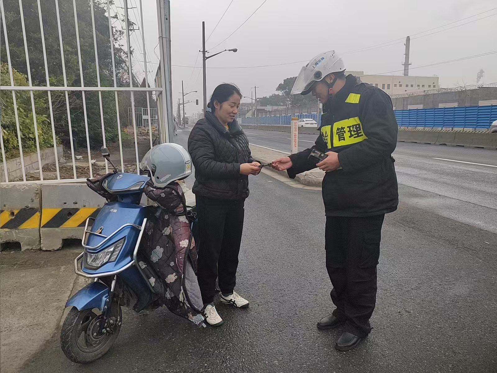 大約過了五六分鐘,一位騎著電瓶車的女子神色焦急地趕到現(xiàn)場,左顧右盼地好像尋找物品。王祥見狀主動上前詢問,女子表示自己的手機剛剛不慎丟失了。