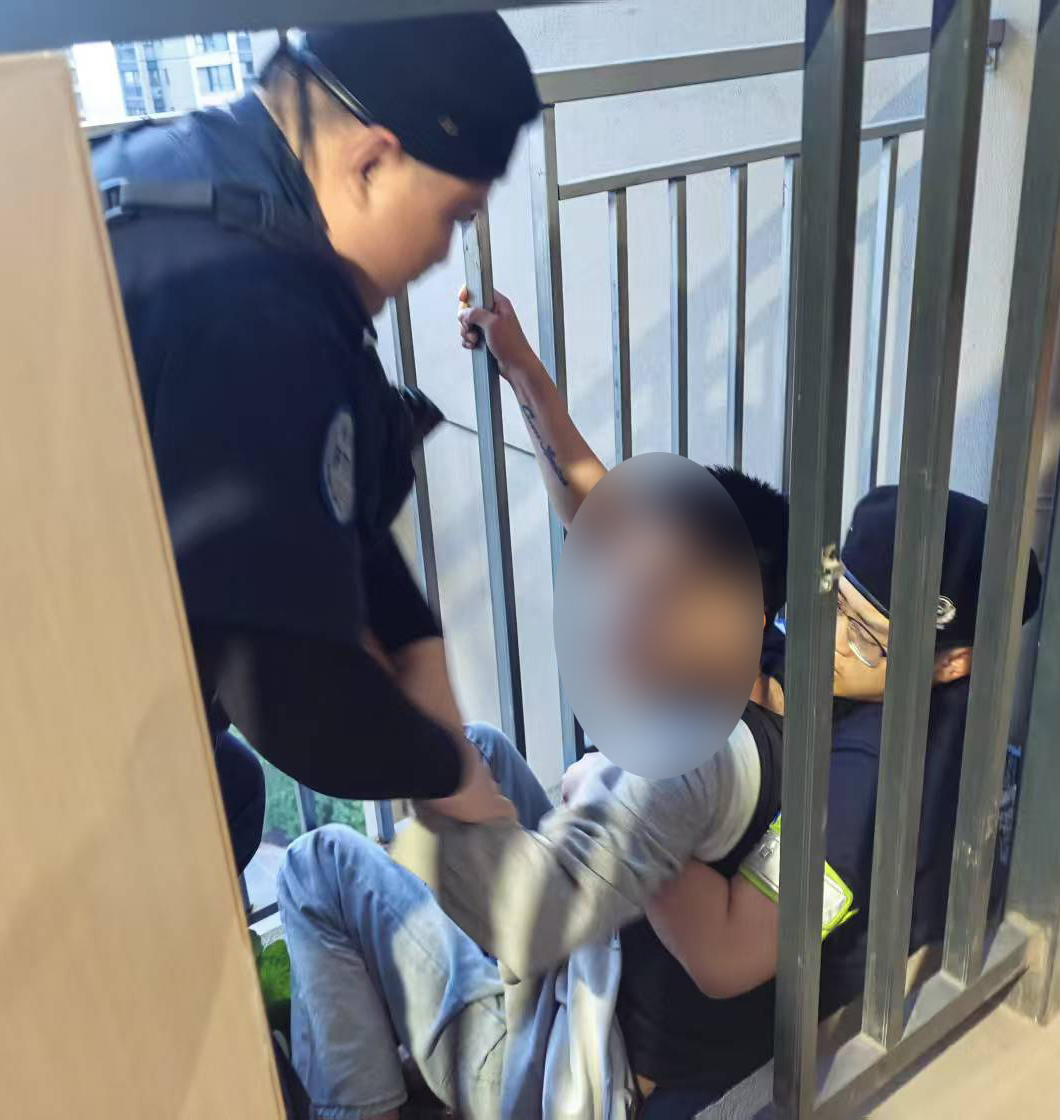 抵達現(xiàn)場后,救援人員迅速沖到24樓,發(fā)現(xiàn)報警人劉先生正緊緊抱著其弟弟劉某某,兩人站在陽臺欄桿邊,情況萬分危急。劉某某情緒極度失控,不斷掙扎扭動,幾次試圖掙脫哥哥的束縛翻越欄桿,稍有不慎后果不堪設想。