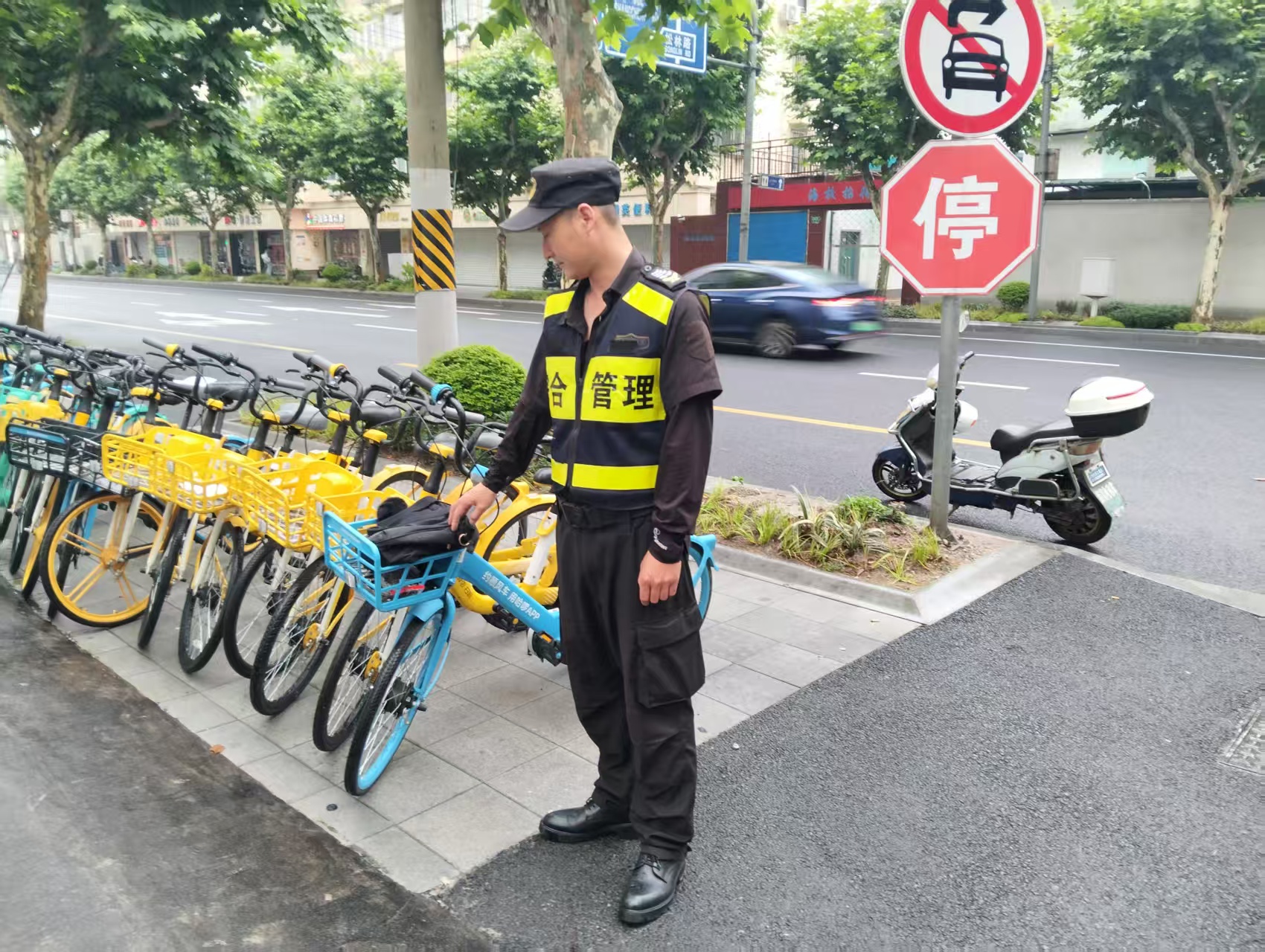 6月13日6:20,宗保公司駐浦東新區(qū)陸家嘴社區(qū)市容項(xiàng)目員工劉飛在乳山路光輝小區(qū)附近整理亂停放共享單車時(shí),在一輛單車的車筐里發(fā)現(xiàn)了一個(gè)手提包,內(nèi)有三張價(jià)值500元的購物卡、大閘蟹會(huì)員卡、銀行卡、信用卡以及若干現(xiàn)金等,但是里面沒有失主的聯(lián)系方式。
