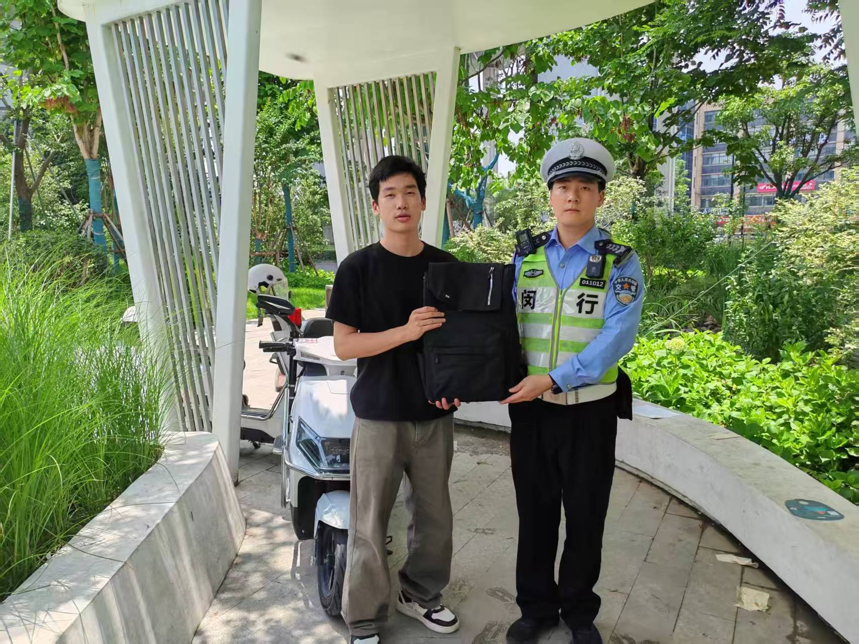 6月14日10:40左右,宗保公司駐閔行區(qū)華漕護(hù)校項(xiàng)目員工徐文坤在閔行外國語中學(xué)保障期間,撿到一個(gè)背包,內(nèi)有一部英特爾筆記本電腦,詢問路人無果后,便將情況報(bào)告了項(xiàng)目負(fù)責(zé)人,并按指示在原地等待。