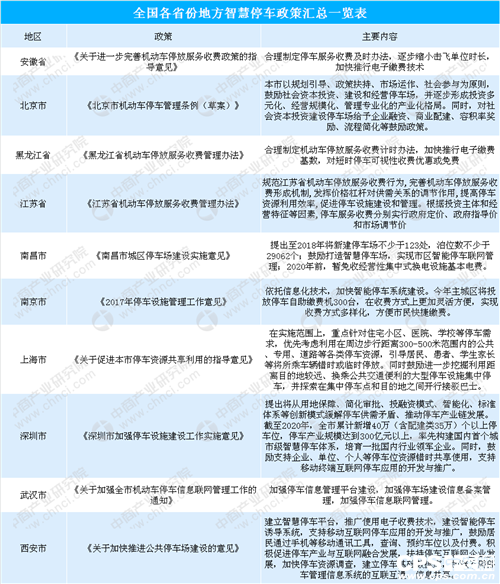 近年來,國家政策不斷鼓勵社會資本投資建設智能停車設施,設備銷售、車場建設、政府購買服務、停車場管理運營以及停車后服務等,都是投資者和創(chuàng)業(yè)者的關注熱點,智能停車場、路側停車、立體停車和共享停車,則是投資建設的主要方向。2015年,國家發(fā)改委發(fā)布了《關于加強城市停車設施建設的指導意見》。意見中提到,將放開社會資本全額投資停車設施收費,逐步縮小政府定價范圍,在智能化停車建設方面,大力推動智慧停車系統(tǒng)、自動識別車牌等高新技術的應用,積極引導車位自動查詢、電子自動收費通行等新型管理形態(tài)的發(fā)展,提高停車資源的使用效率。隨后,智慧停車產業(yè)相關政策密集出臺。