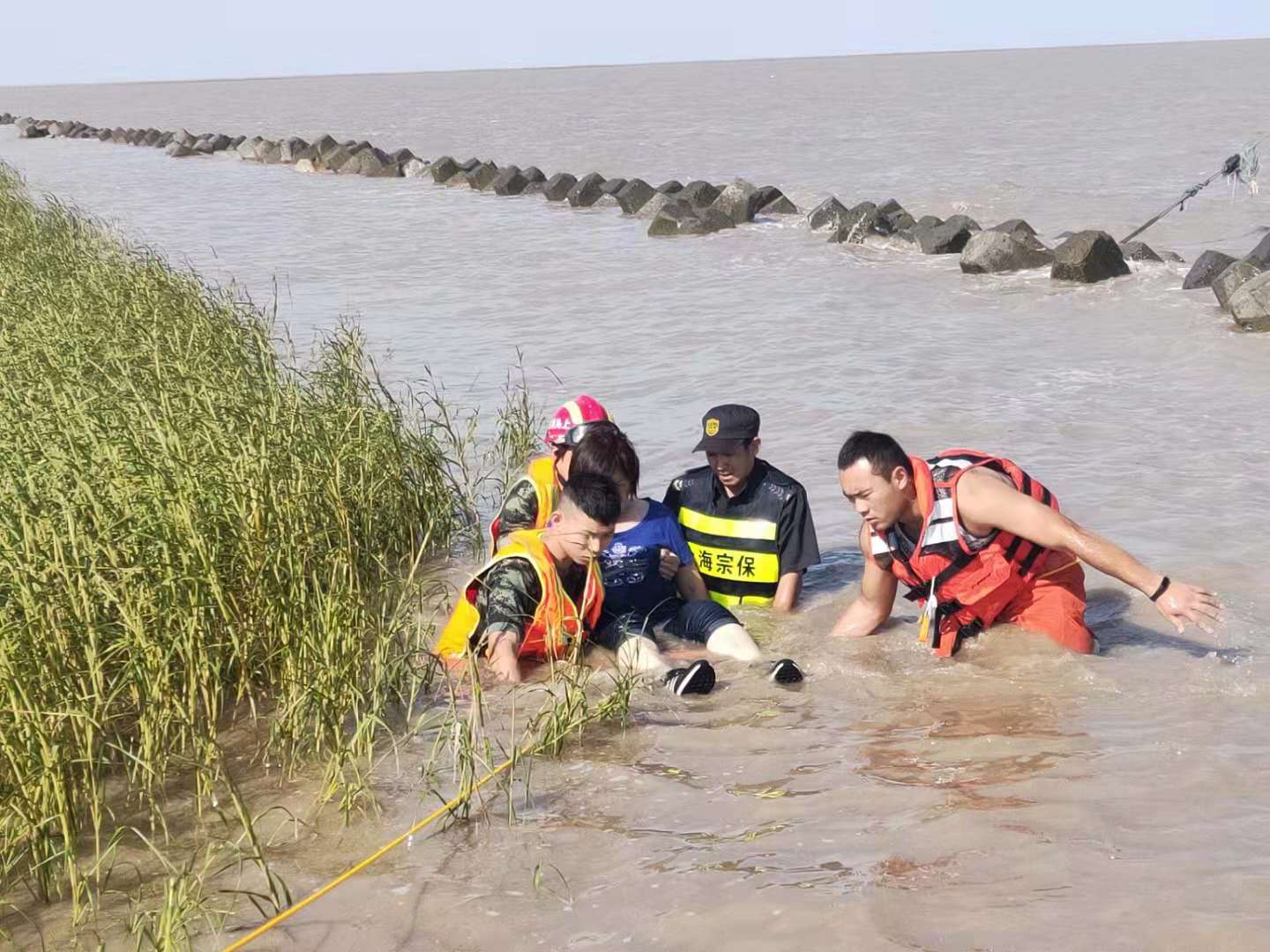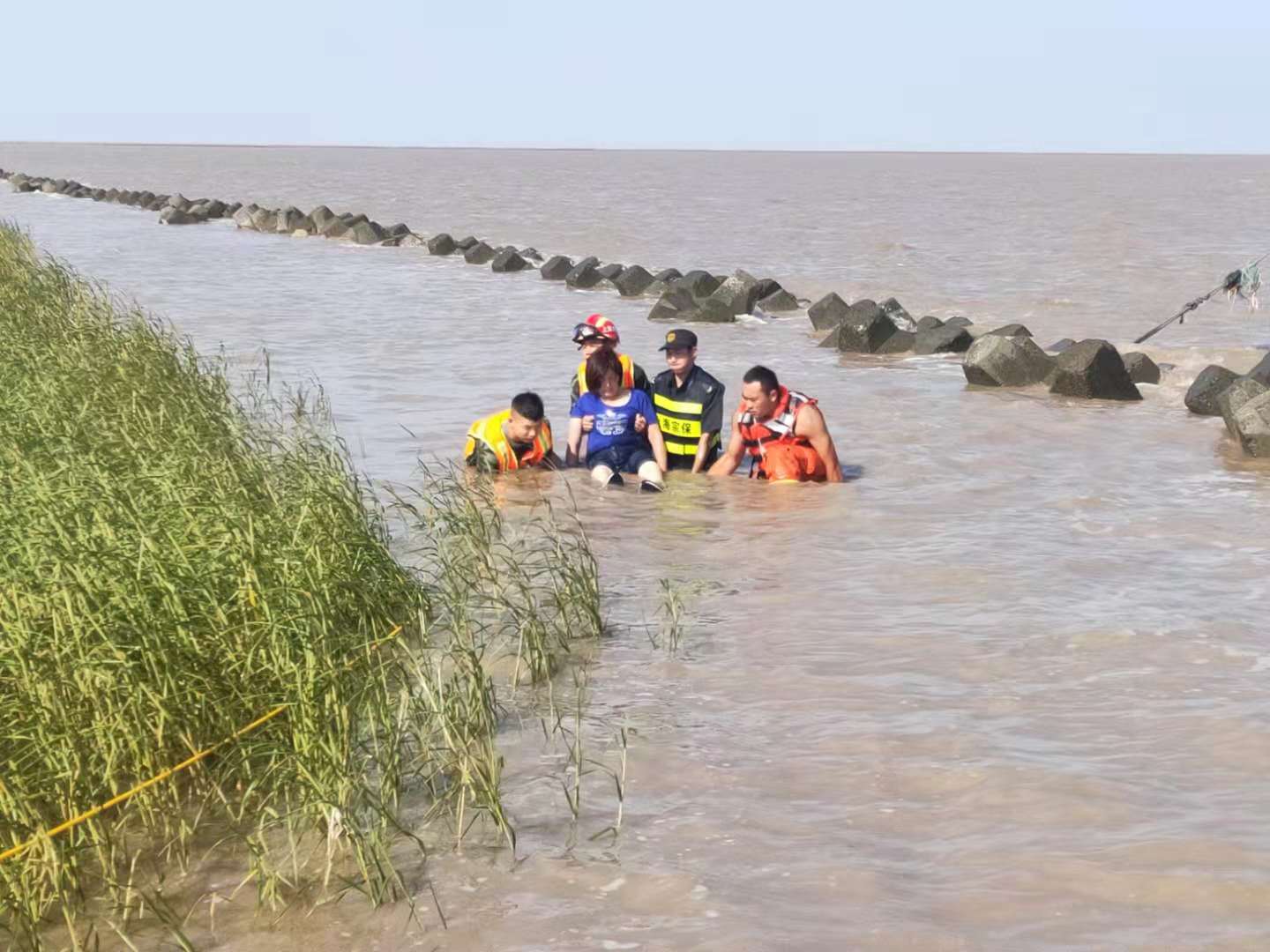 國慶假日,上海臨港,游人如織。海邊的觀海嘴公園風(fēng)景如畫,更是游樂的好去處。不少游客不顧提醒、勸阻,擅自翻躍海堤,到海灘上嬉戲。這兩名青年男女甚至到更遠的礁石上玩耍,女游客因腿部扭傷,在漲潮時無法及時撤離,兩人被海水困住了。