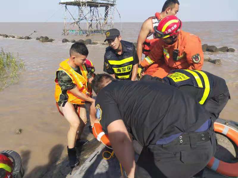 上海宗保保安服務(wù)有限公司南匯新城項目的城管輔警隊員呂永峰、周柳星、羅玉壽發(fā)現(xiàn)這一險情后,一邊向值班人員匯報,一邊報警請求救援。待消防隊員趕到現(xiàn)場后,積極參與救援。最終,在多方努力下,受困的游客成功獲救。
