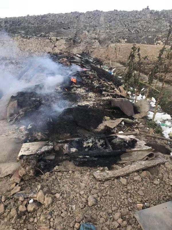 大約半個(gè)小時(shí)左右火勢有所減小,隊(duì)員們就地取材實(shí)施滅火。有的利用廢棄的水桶到遠(yuǎn)處河邊打水滅火,有的借來滅火器滅火,有的用樹枝撲打明火。