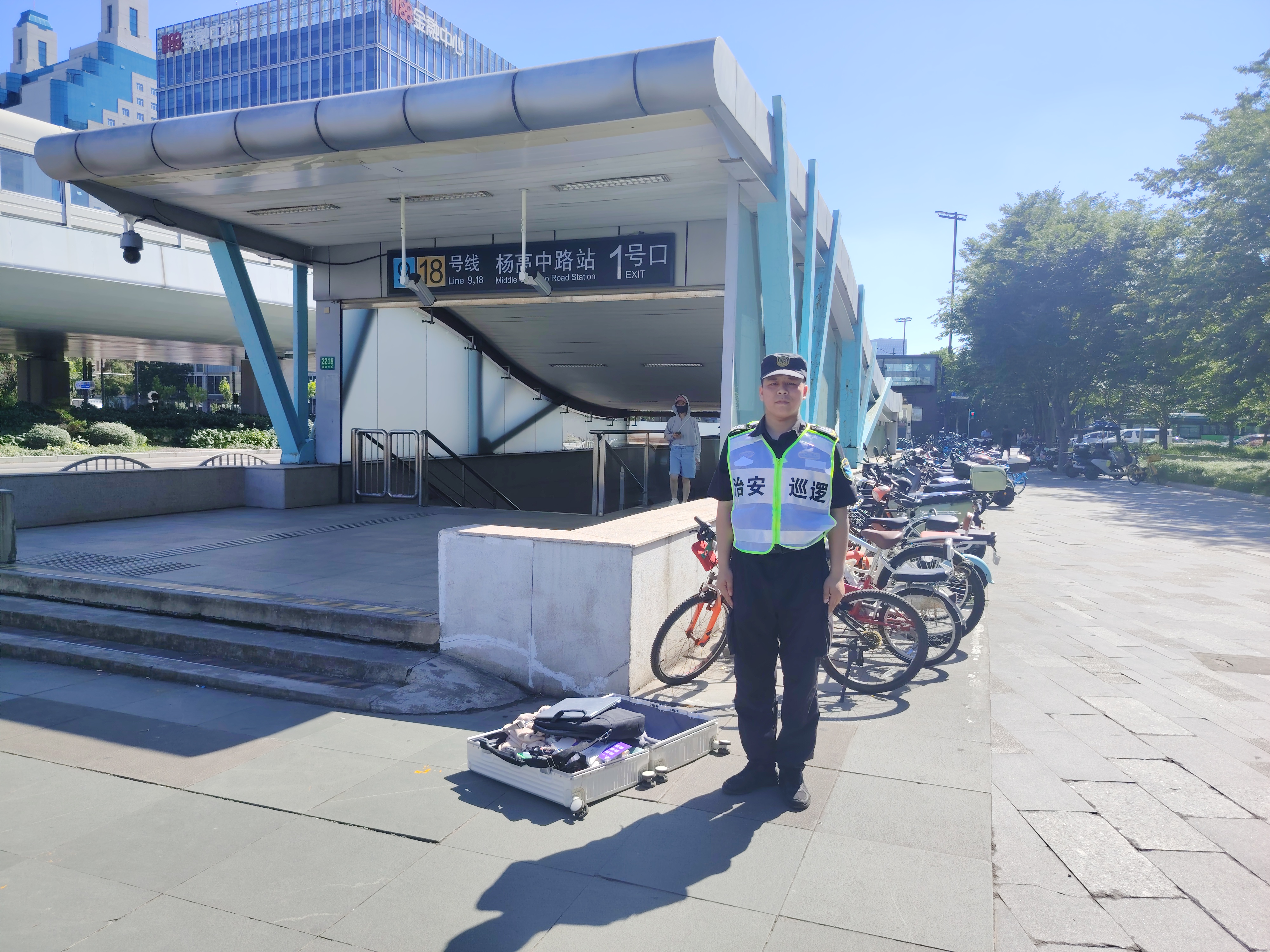 7月5日14:30,宗保公司駐浦東新區(qū)公安分局洋涇派出所輔助項(xiàng)目員工黃健和韓邁巡邏至楊高中路地鐵站1號(hào)口時(shí),撿到一個(gè)行李箱,內(nèi)有一臺(tái)筆記本電腦和若干衣物。