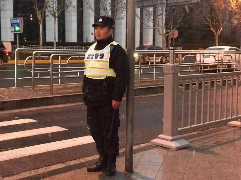 在跨年夜當天,隊員們不顧天氣嚴寒,依然堅守崗位,無私奉獻,即使是面對風雪,依然對市民游客面帶微笑、熱情指路。用宗保公司誠摯的服務理念與熱情的服務水平來回報社會,以確保小陸家嘴區(qū)域在跨年夜中無安全事故,人民群眾能過一個安定祥和的元旦佳節(jié)。
