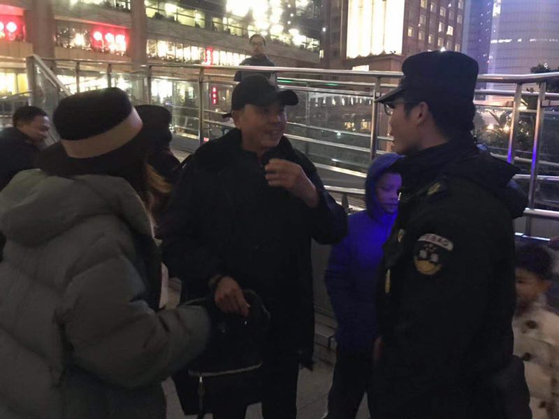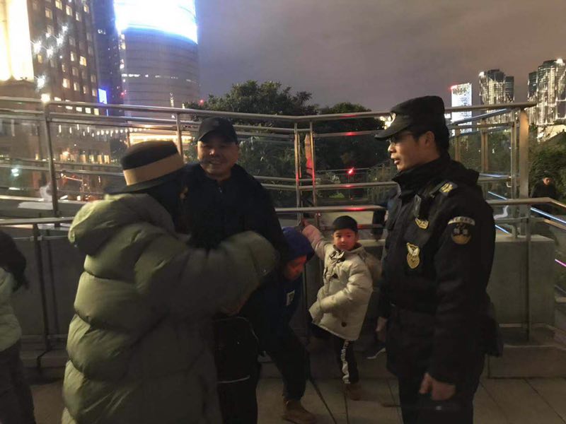 2018年12月31日晚20時25分,正在濱江區(qū)域安排大客流管控設卡工作的特保隊長余澤權(quán)接到當天值班所長夏志松的協(xié)查指令,說濱江哈根達斯附近有增援民警求助,現(xiàn)場有游客家屬走丟,要求我們趕到現(xiàn)場處置。接到這一指令后,余澤權(quán)帶領濱江段執(zhí)勤班長王曉盼與隊員張雅坤趕赴現(xiàn)場,找到當事人后通過了解,當事人一家在濱江親水平臺處與其父親走散,電話聯(lián)系不通,而且都是第一次來到小陸家嘴區(qū)域游玩,對地方不熟悉。