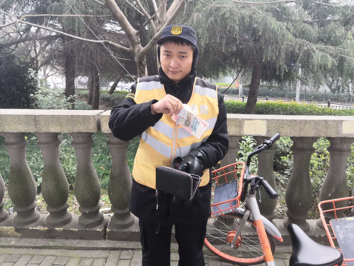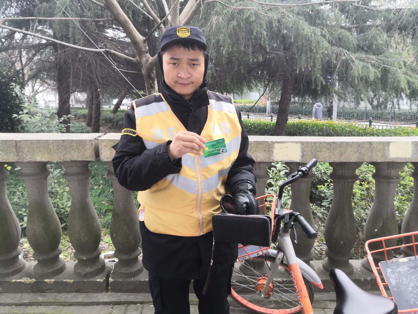 2019年1月2日09:30,宗保駐金橋市容隊(duì)員何金標(biāo)、羅友恒在新金橋路1745號(hào)執(zhí)勤擺放共享單車過程中,發(fā)現(xiàn)有一輛共享單車前面車斗內(nèi)有一個(gè)錢包,當(dāng)事人不在現(xiàn)場(chǎng)。兩位隊(duì)員立即上報(bào)區(qū)域負(fù)責(zé)人。在上報(bào)過程中,失主來到了現(xiàn)場(chǎng),根據(jù)錢包中的身份證和手機(jī)號(hào)碼的核對(duì),確認(rèn)錢包是當(dāng)事人后,將錢包歸還給失主。