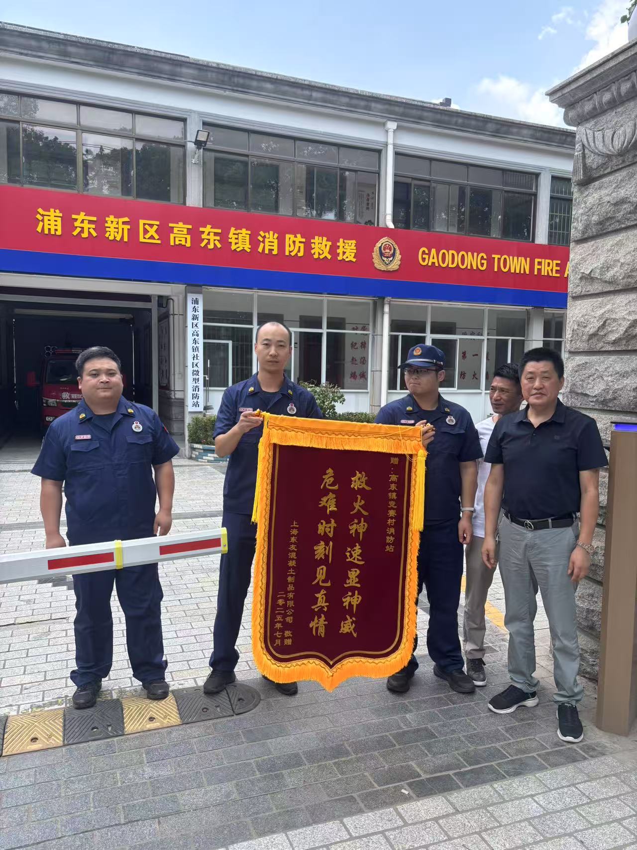 7月17日,宗保公司駐浦東新區(qū)高東鎮(zhèn)競賽村社區(qū)微型消防站收到上海東友混凝土制品有限公司贈送的一面繡有“救火神速顯神威 危難時刻見真情”的錦旗,感謝公司員工撲滅其公司辦公樓火情的英勇行為。