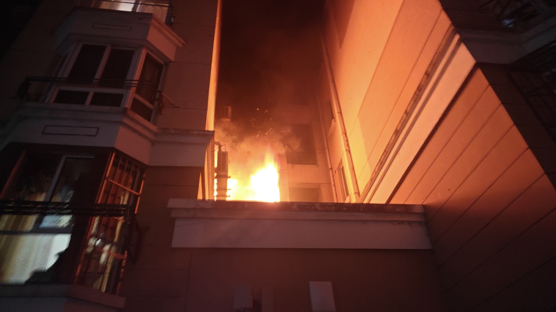 抵達現(xiàn)場后,兩人發(fā)現(xiàn)居民樓三樓陽臺有明火和濃煙冒出,第一時間將現(xiàn)場情況反饋給浦東新區(qū)消防指揮中心。隨后,他們迅速跑至三樓,看到兩位老人正在嘗試滅火,一位老人經(jīng)勸說離開房間,另一位老人卻不肯出來。危急時刻,微站兩名員工立即進入房間,將老人護送至室外安全區(qū)域。