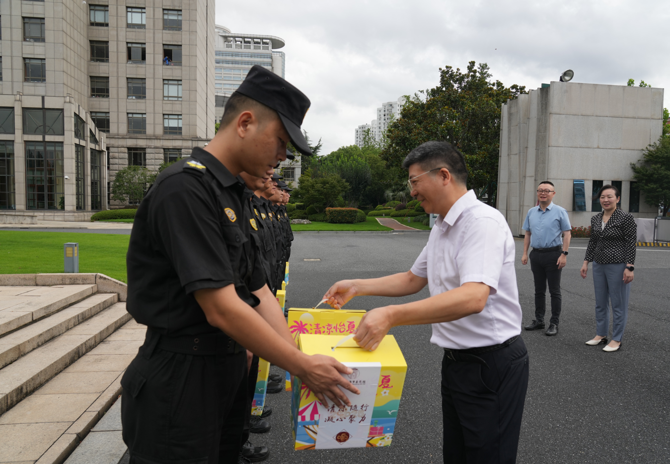 7月29日,上海市委黨校副校長(zhǎng)戴冰一行,頂著炎炎烈日,看望慰問(wèn)高溫下堅(jiān)守崗位的宗保公司員工,為他們送上防暑降溫用品,表達(dá)市委黨校對(duì)安保人員的關(guān)心和問(wèn)候,感謝大家為維護(hù)黨校秩序所付出的辛勤勞動(dòng),叮囑大家安排好休息,照顧好身體。