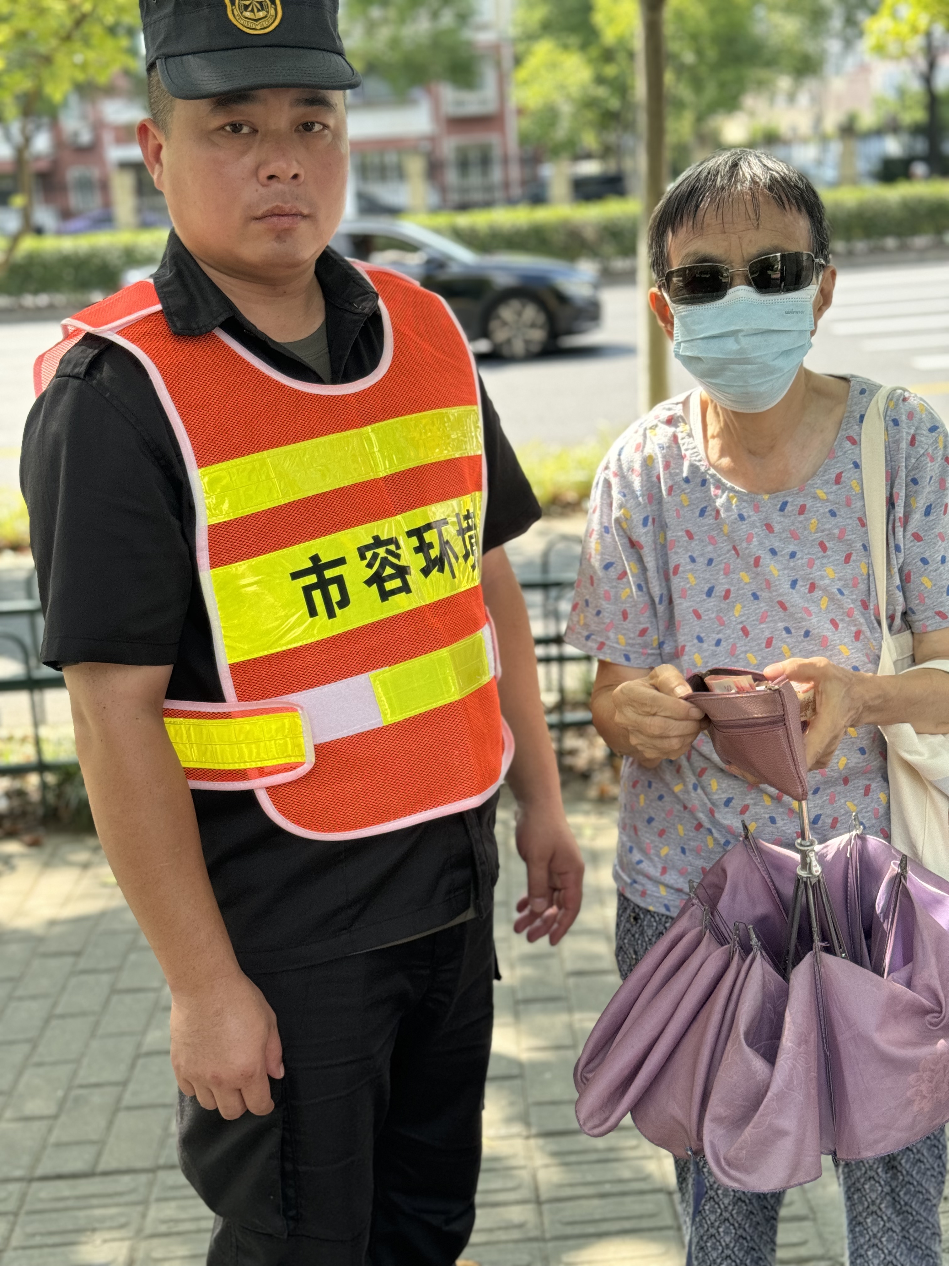 9月9日10:40,宗保公司駐浦東新區(qū)南碼頭市容項(xiàng)目員工桑飛巡邏至浦三路675號時,撿到一個粉色手包,內(nèi)有500元現(xiàn)金、身份證、銀行卡、社保卡等物品。考慮到失主可能會返回尋找,桑飛將情況報(bào)告項(xiàng)目負(fù)責(zé)人后便在原地等待。