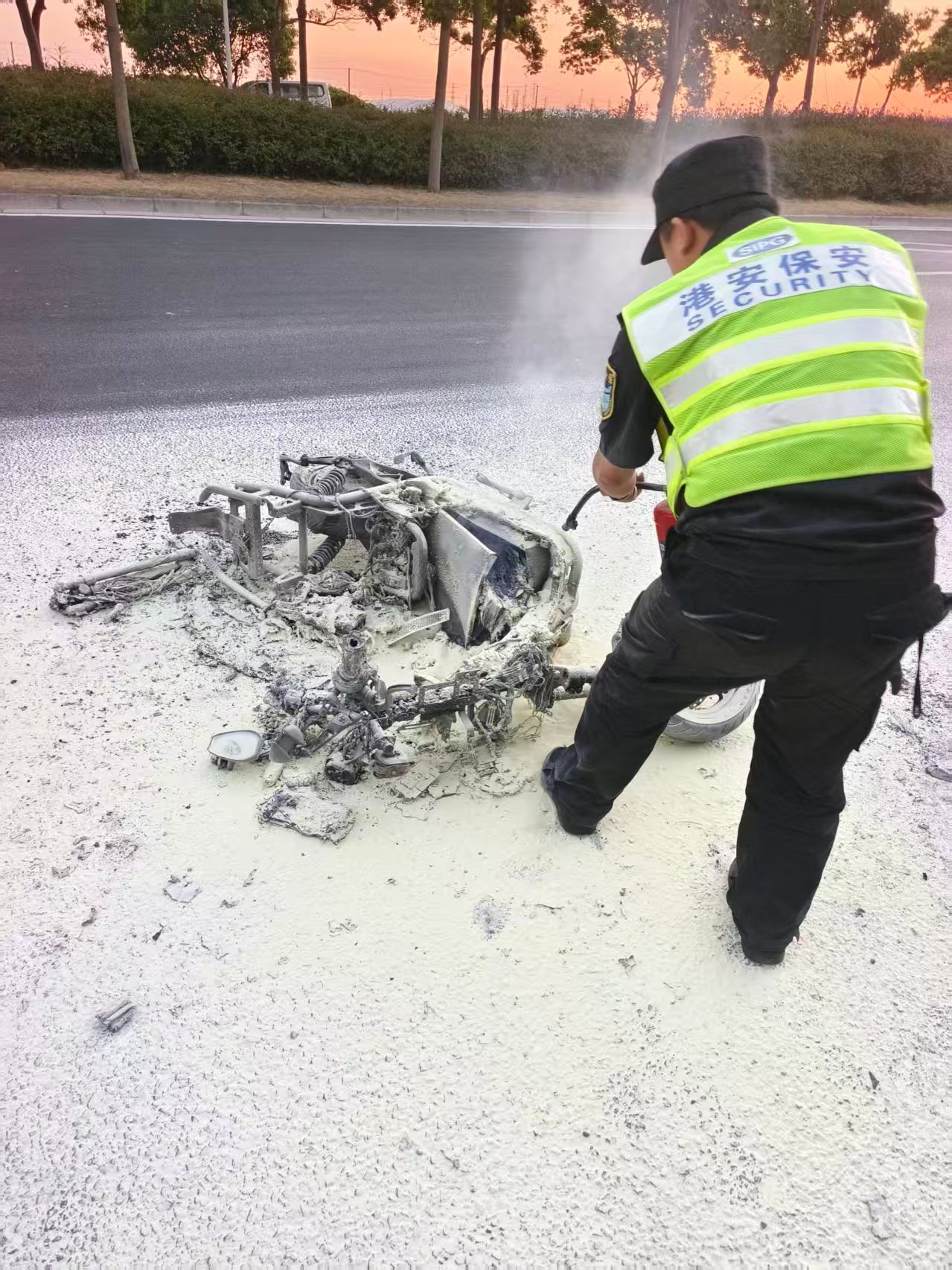 9月6日凌晨,宗保公司駐浦東新區(qū)臨港危險(xiǎn)品倉庫項(xiàng)目員工執(zhí)勤期間,迅速應(yīng)對一起突發(fā)電瓶車起火事件,有效避免了可能引發(fā)的重大安全事故。