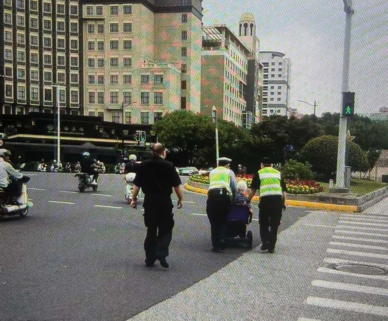 10月1日上午,宗保公司駐閔行區(qū)虹橋交管輔助項目員工李業(yè)兵和汪俊連在執(zhí)勤中,熱心推車幫助一位七旬老人平安回家。