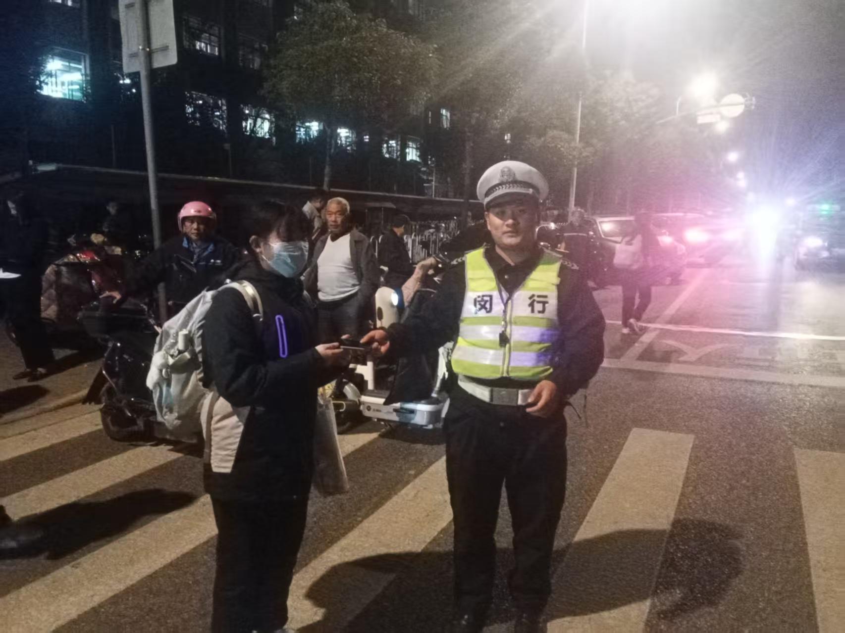 14:50左右,一位身穿紅色格子外套的女士在民警的陪同下趕來現場尋找。經民警確認后,漆貴成將小包和其中物品歸還給了女士。