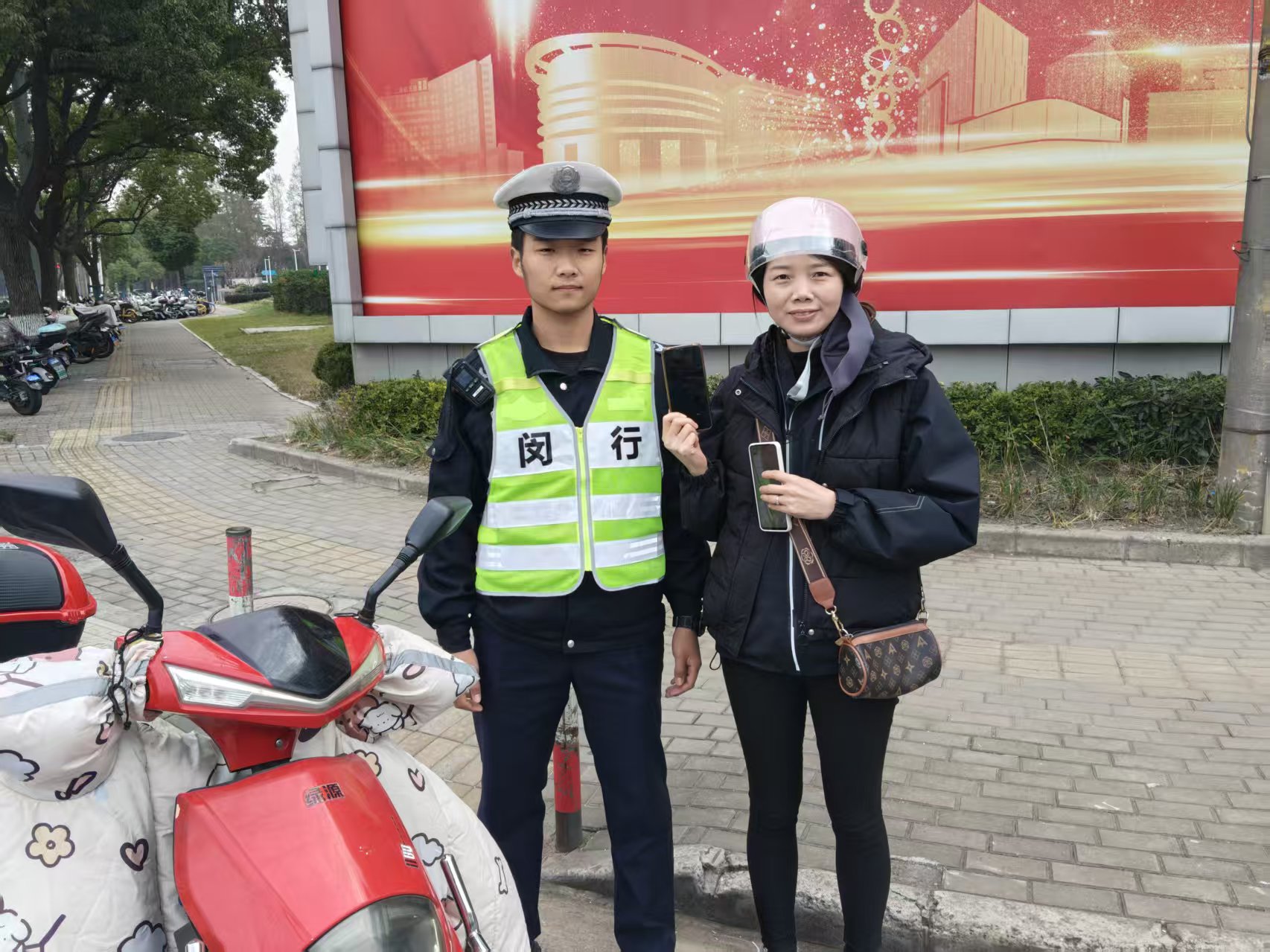 不一會兒,一位身穿黑色外套的女士急匆匆地趕到約定地點(diǎn)。魏碩陽通過女士解鎖手機(jī)密碼,確認(rèn)其是失主后,就把手機(jī)歸還給了她。女士拿到手機(jī)非常高興,連連向魏碩陽道謝。