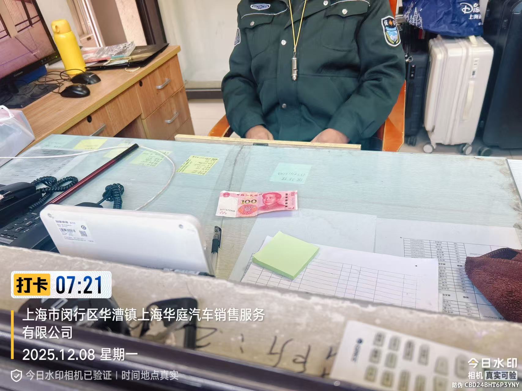 12月8日7:19,宗保公司駐閔行區(qū)華漕護(hù)校項目員工魏碩陽在執(zhí)勤期間撿到100元現(xiàn)金。詢問周邊家長和學(xué)生無人認(rèn)領(lǐng)后,魏碩陽向項目負(fù)責(zé)人匯報,并按照指示將現(xiàn)金交到學(xué)校門衛(wèi)室。