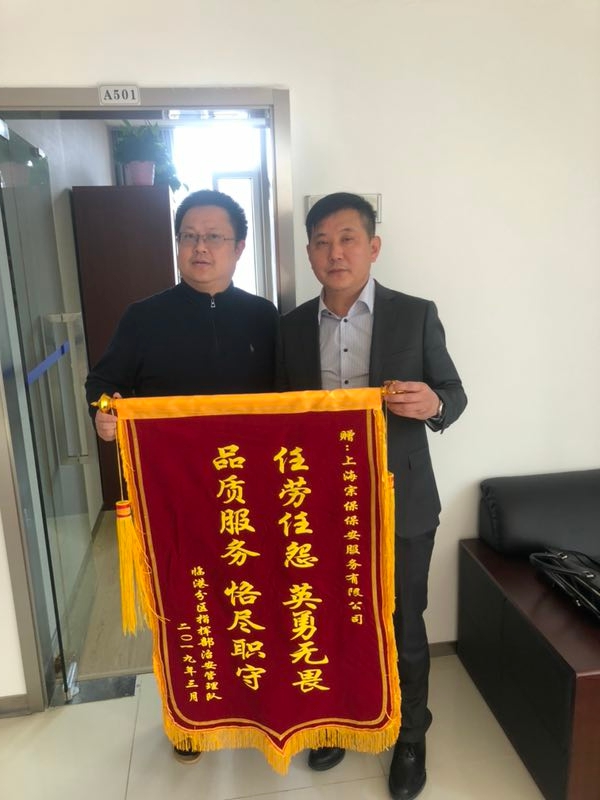 2019年3月13日,浦東公安分局臨港分區(qū)指揮中心送錦旗到宗保保安公司,對公司臨港區(qū)域特保工作表示認可和肯定。