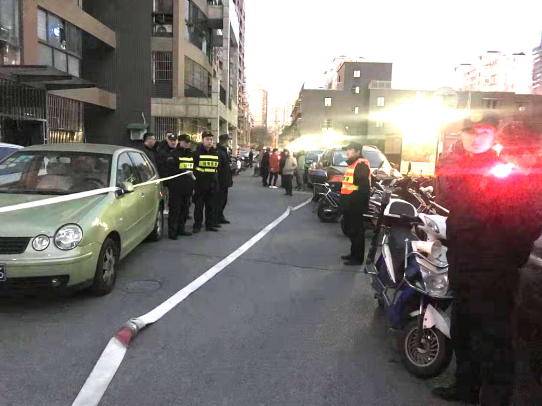 原來是南碼頭街道臨沂路某小區(qū)居民家中發(fā)生火情。隊員們到達現(xiàn)場,第一時間疏散人群攔起警戒線。為了讓消防車無障礙快速進入,幾名隊員在火災(zāi)現(xiàn)場周邊道路維護秩序指揮交通。消防人員到達現(xiàn)場后,很快撲滅明火。