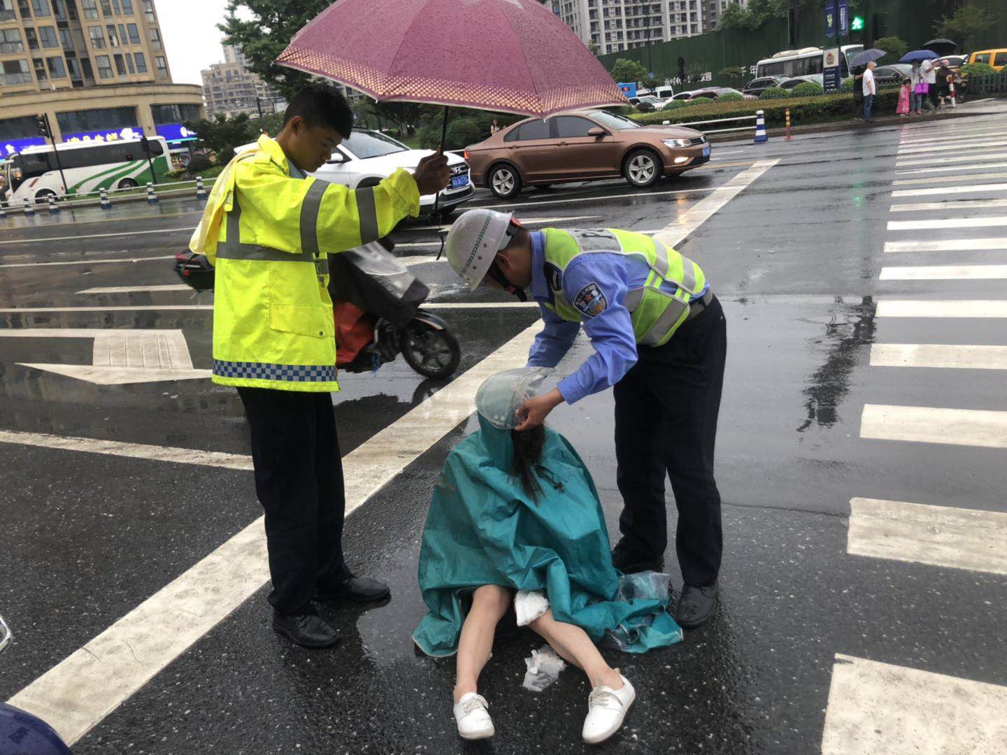當日17:40左右,隊員李丹、李寶玉和王春陽在閑興路永樂商務(wù)酒店附近巡邏,發(fā)現(xiàn)在不遠處非機動車道上發(fā)生兩電動車事故,一方逃逸,一方受傷倒地??吹酱饲闆r后,隊員第一時間上前維護現(xiàn)場報警并上報當日值班。在接到中隊指令現(xiàn)場取證完畢后,詢問得知傷者傷勢不是很嚴重,隨后護送傷者到閑林衛(wèi)生院進行醫(yī)治。