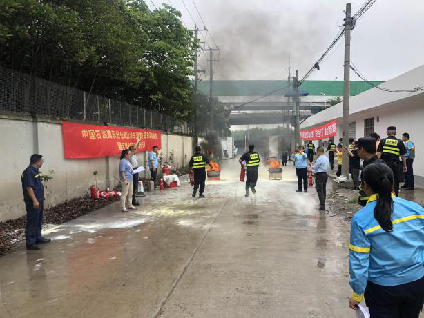 為提升應(yīng)急處置能力,2019年7月10月,三林中石油加油站與宗保三林項(xiàng)目聯(lián)合組織消防演練。