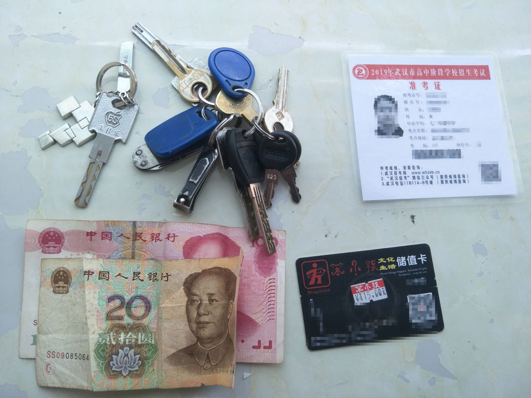 經(jīng)民警開包檢查:內(nèi)有現(xiàn)金120元,準(zhǔn)考證一張,購物卡一張,衣服、食品等物品。