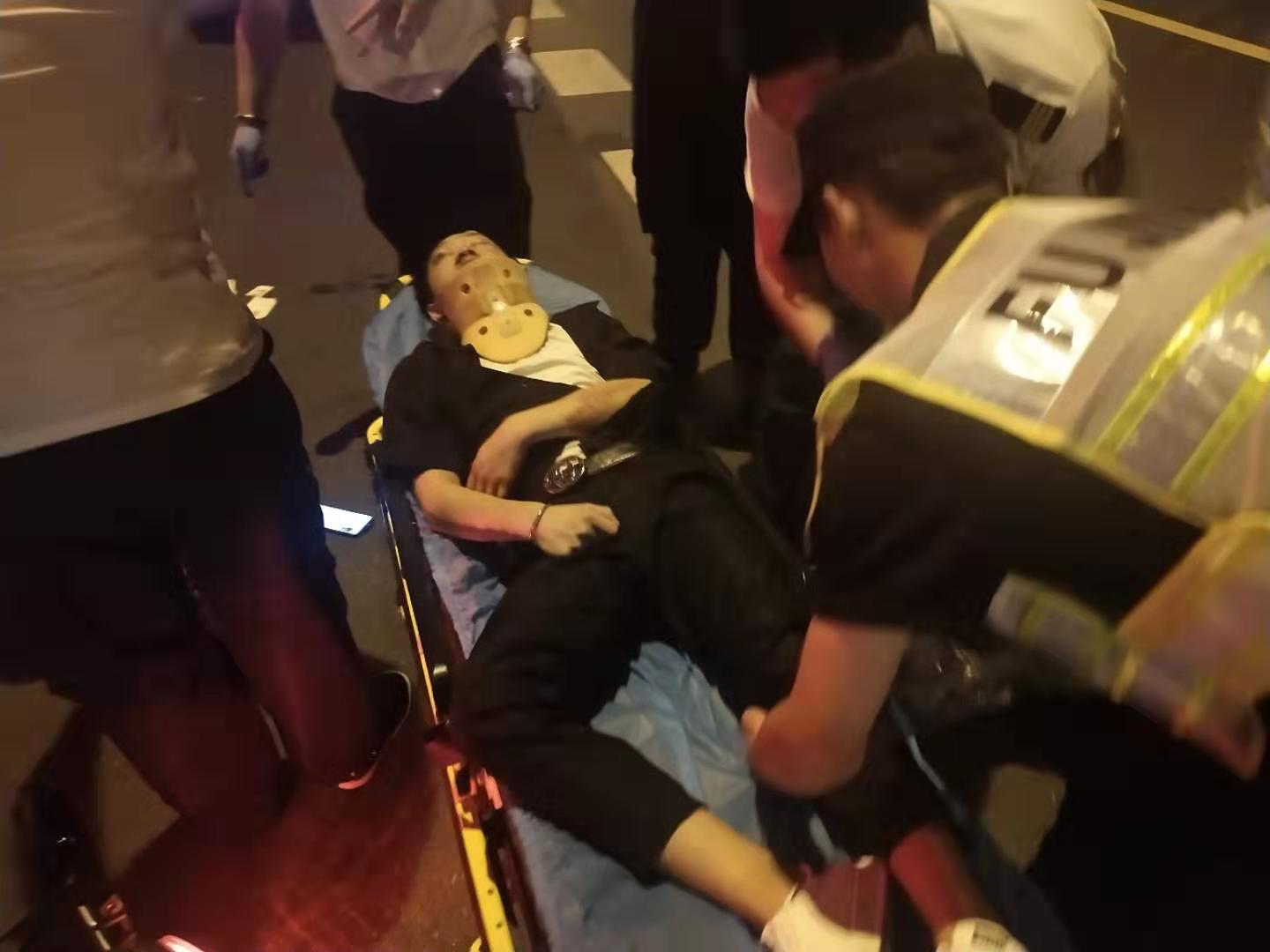 當天凌晨2:00左右,謝富軍和孟祥哲在金橋地鐵站9號線1號口附近執(zhí)勤巡邏時,突然聽到一聲碰撞聲。謝富軍和孟祥哲來不及猶豫,直覺告訴他們“出事了”。二人立馬跑過去,原來是一輛載著三個人的電瓶車撞到了公交車站柱子上,其中一個人當場倒地昏迷、口吐白沫、全身發(fā)抖;另外兩人一人右臂疼痛,一個暫無大礙。