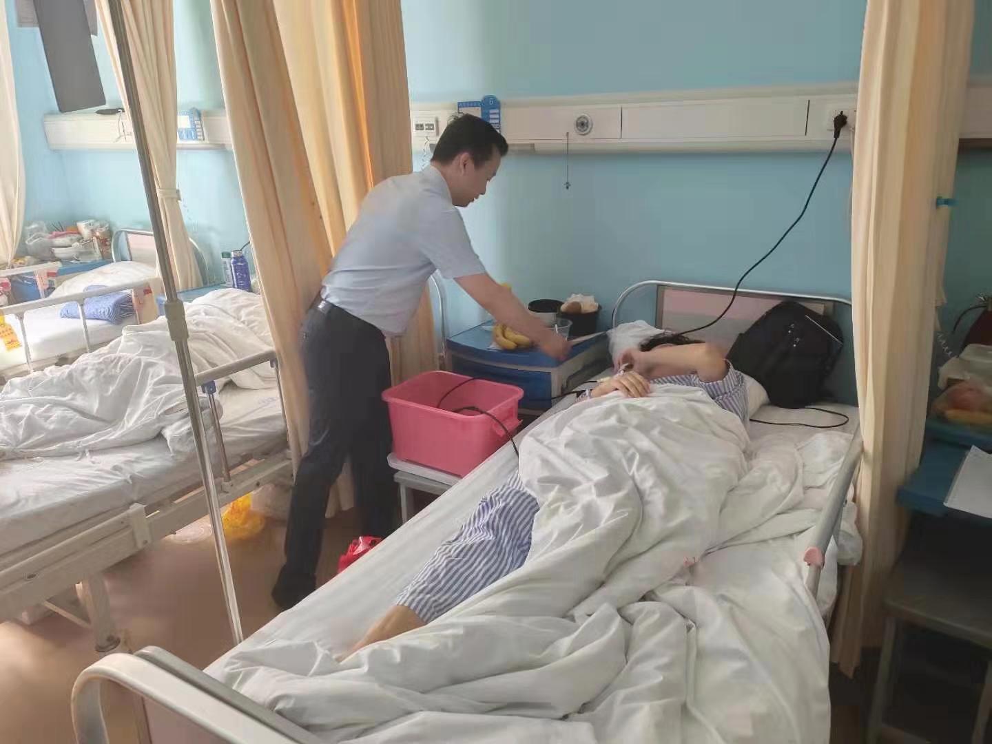 董事長的關(guān)懷、杜明杰副總經(jīng)理的親自探望,讓王玲深受感動(dòng),非常感謝公司領(lǐng)導(dǎo)和同事們的關(guān)心愛護(hù),表示一定會(huì)積極配合醫(yī)生做好康復(fù)治療,爭取早日回到工作崗位。
