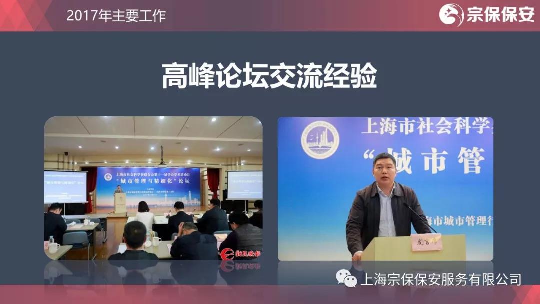 請進來虛心請教,走出去敞開交流。2017年是上海市城市管理高峰論壇開辦的第二年,公司連續(xù)兩年受邀參加,并做主題發(fā)言。敞開心扉講實話,集思廣益謀發(fā)展。公司精細化管理的經驗做法系統(tǒng)、實在、管用,引起與會者強烈的共鳴。共鳴的背后是宗保人對工作的認真負責、注重實效、勇于創(chuàng)新,是宗保人九年如一日的探索與堅守?!昂<{百川、追求卓越、開明睿智、大氣謙和”的上海精神,在宗保人身上得到很好的體現(xiàn)。