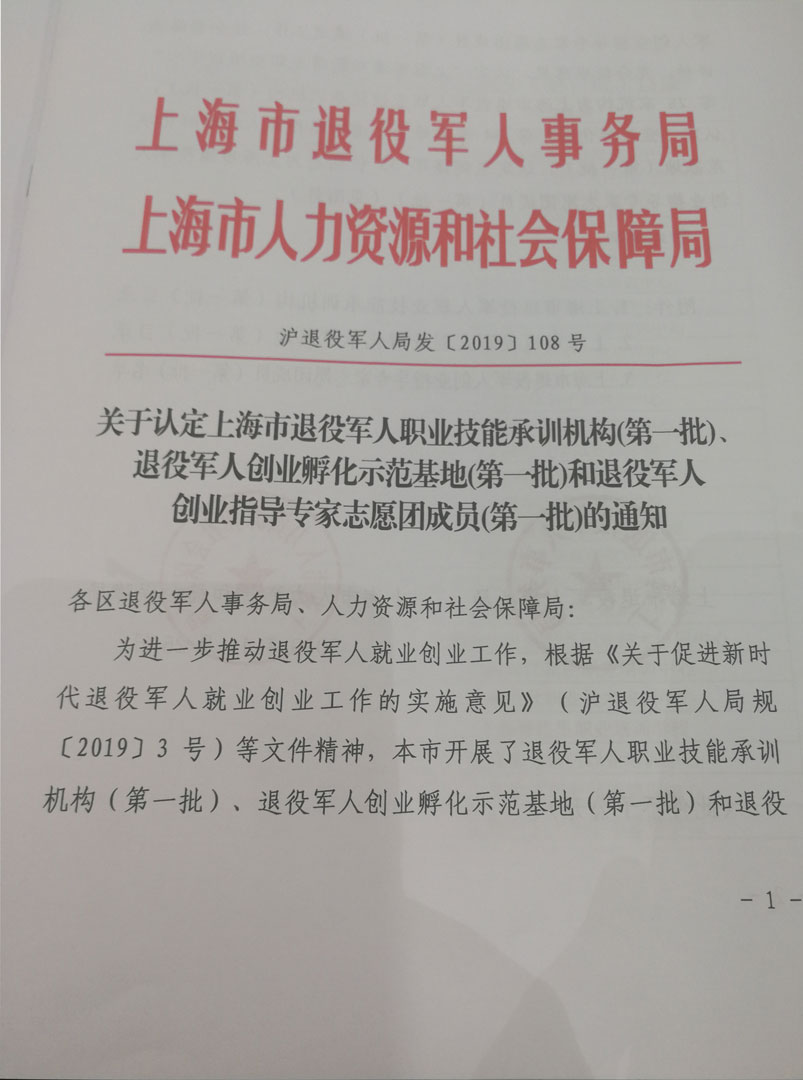 會(huì)上,市人力資源和社會(huì)保障局就業(yè)處副處長黃河宣讀了《關(guān)于認(rèn)定上海市退役軍人職業(yè)技能承訓(xùn)機(jī)構(gòu)(第一批)、退役軍人創(chuàng)業(yè)孵化示范基地(第一批)和退役軍人創(chuàng)業(yè)指導(dǎo)專家志愿團(tuán)成員(第一批)的通知》。宗保公司董事長馮中保被認(rèn)定為上海市退役軍人創(chuàng)業(yè)指導(dǎo)專家志愿團(tuán)成員。