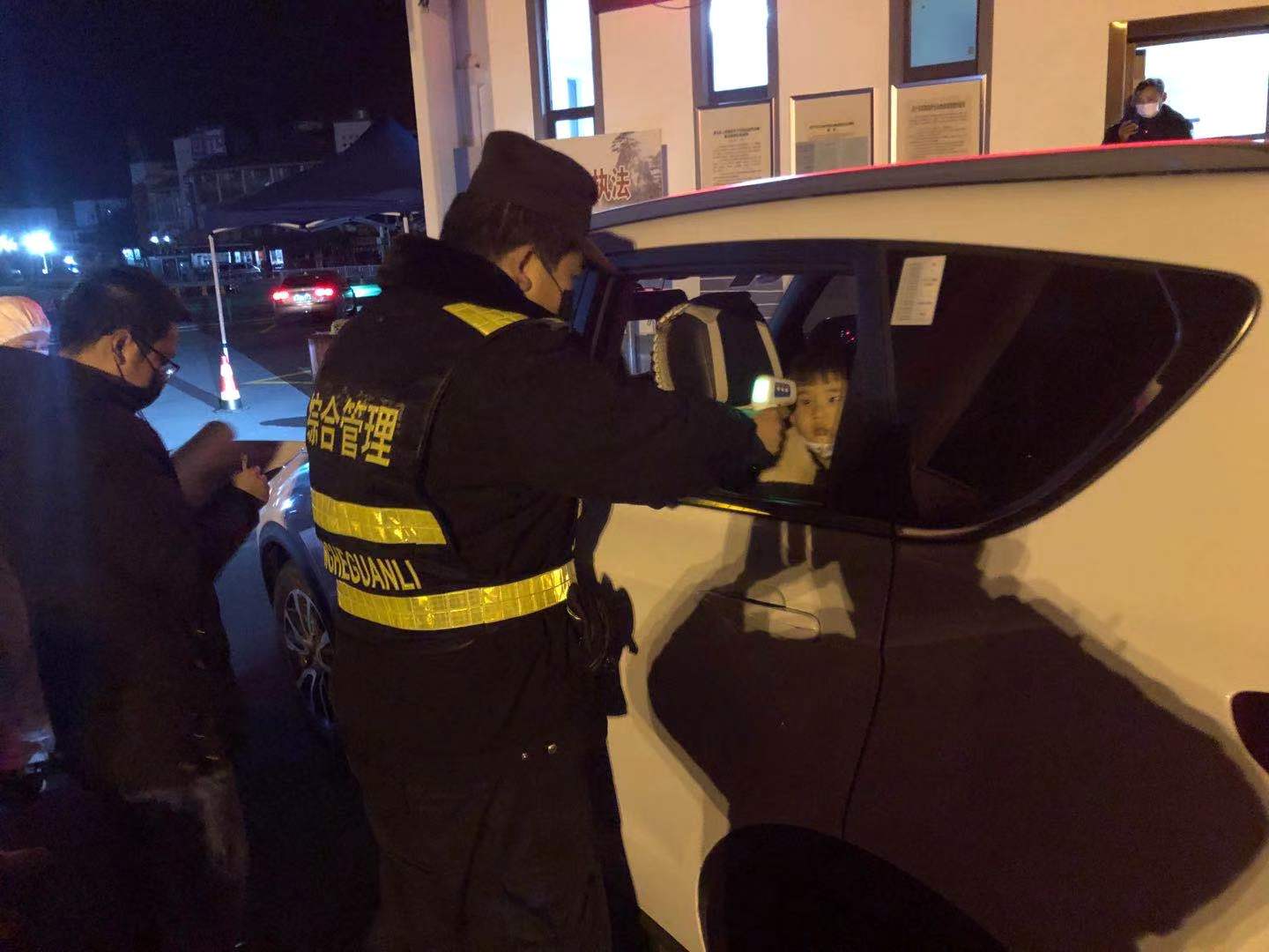 疫情防控中,郭凱配合鎮(zhèn)政府檢查過往車輛,檢測司乘人員體溫,做好數(shù)據(jù)登記。每天抗疫在一線,長達12個小時。