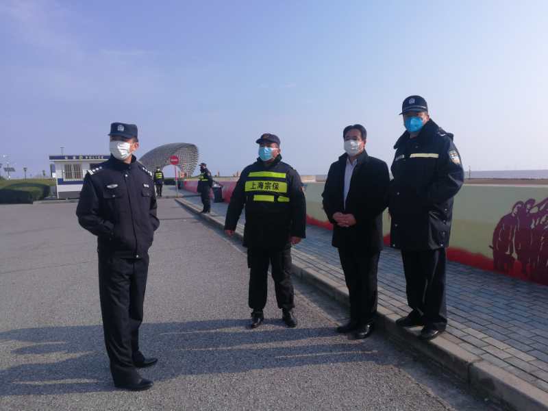 2月17日晚,張江鎮(zhèn)政法書記潘艷萍現(xiàn)場檢查指導疫情防控工作,看望慰問疫情防控一線的宗保員工。