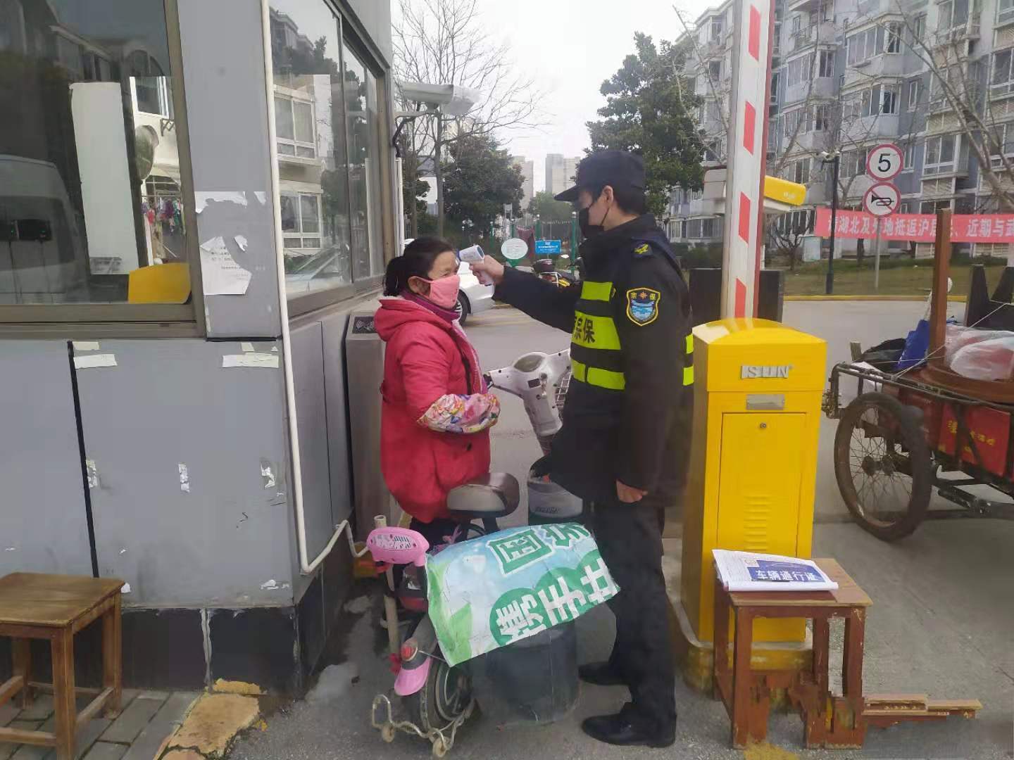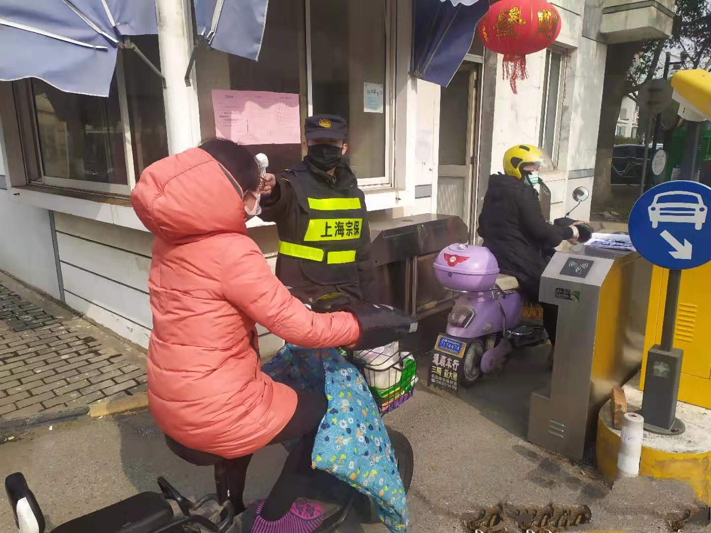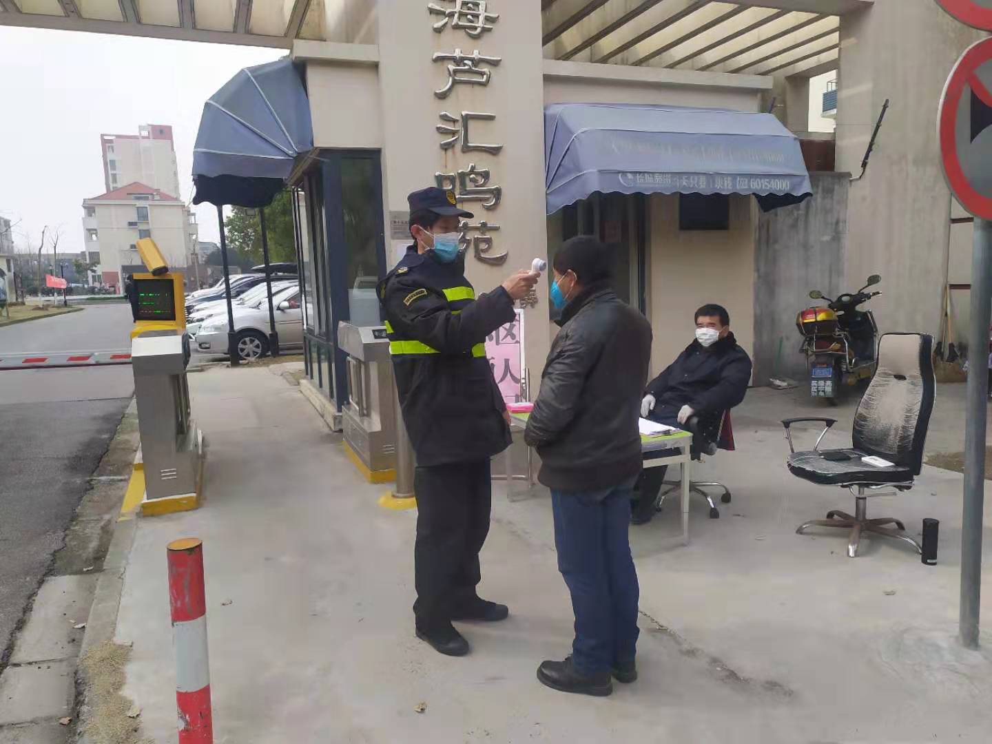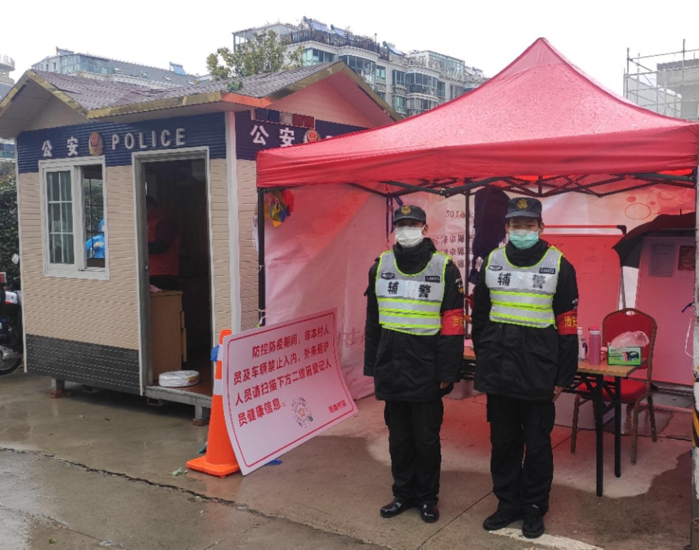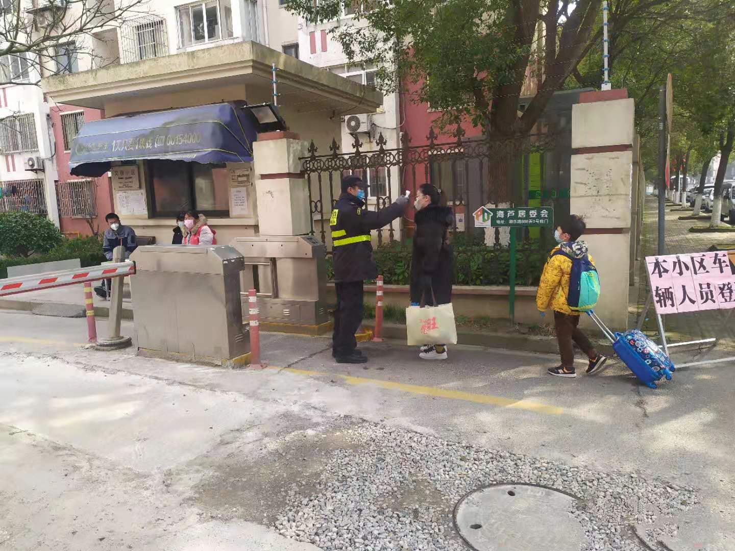 堅守在周浦鎮(zhèn)小區(qū)門口