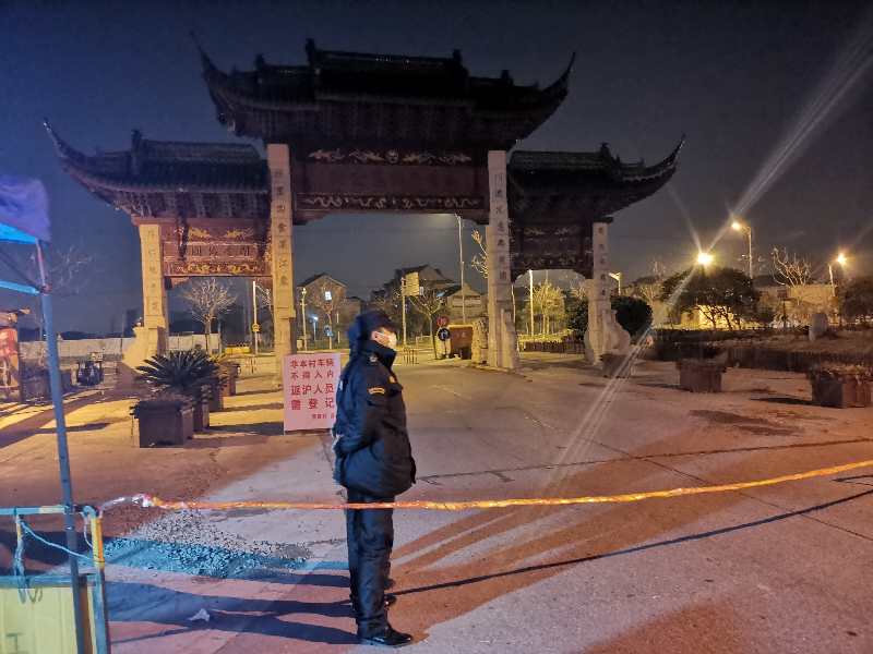 堅守在惠南鎮(zhèn)小區(qū)門口