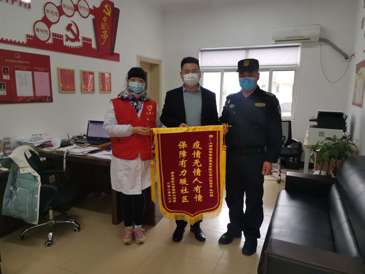 2月28日,浦東新區(qū)大團鎮(zhèn)南大居委送來一面錦旗,贊揚公司駐大團市容項目在疫情防控中的工作表現(xiàn),對全體隊員表示感謝。