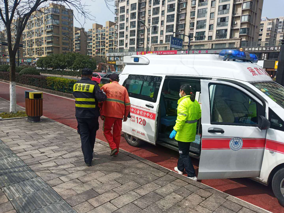 3月7日11點(diǎn)34分,浙江民泰保安公司駐東湖市容蘭江菜場(chǎng)項(xiàng)目保安隊(duì)員李亞洲、俞建農(nóng)在巡邏中發(fā)現(xiàn)一位保潔大爺昏倒在地上,旁邊圍觀人員無(wú)人上前。面對(duì)倒地的老人,兩位隊(duì)員沒(méi)有任何猶豫,急忙上前將大爺扶起,詢問(wèn)狀況,查看有沒(méi)有受傷,同時(shí)撥打120急救電話。120救護(hù)車到達(dá)后,兩位隊(duì)員主動(dòng)幫助醫(yī)護(hù)人員把保潔大爺攙扶上救護(hù)車,隨后兩名隊(duì)員繼續(xù)巡邏。