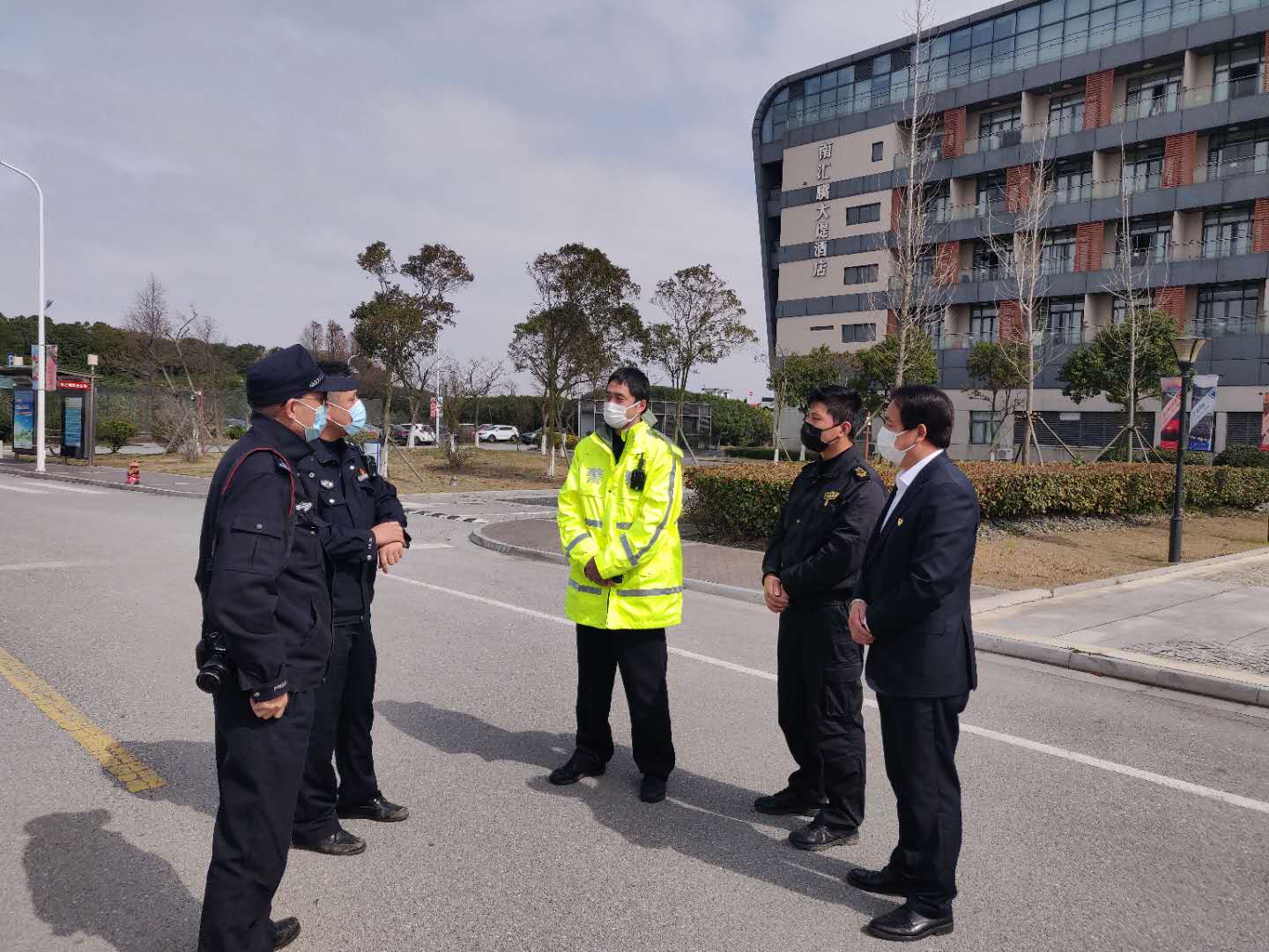 3月5日,惠南鎮(zhèn)黨委書記潘秀紅、政法書記沈列勇、世博公安處大隊長張華到工作一線檢查指導,看望勉勵參與疫情防控的宗保員工。