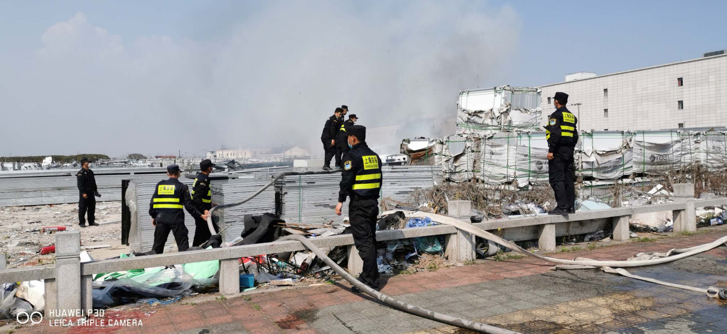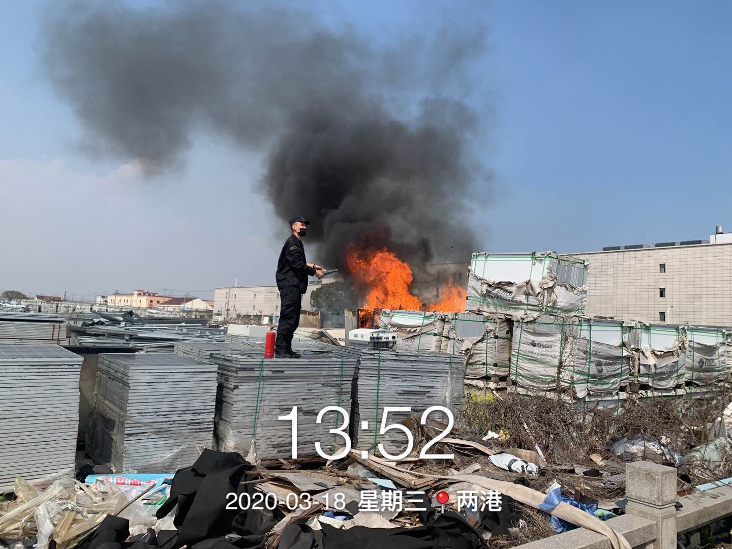2020年3月18 日13:50,南六公路699號北側(cè)閑置空地發(fā)生了一起由廢棄物自燃引起的火災(zāi)。宗保公司駐兩港裝飾城隊員巡邏中發(fā)現(xiàn)火情,立即報告保安部,并急赴現(xiàn)場進行滅火,同時撥打“119”火警電話報警。