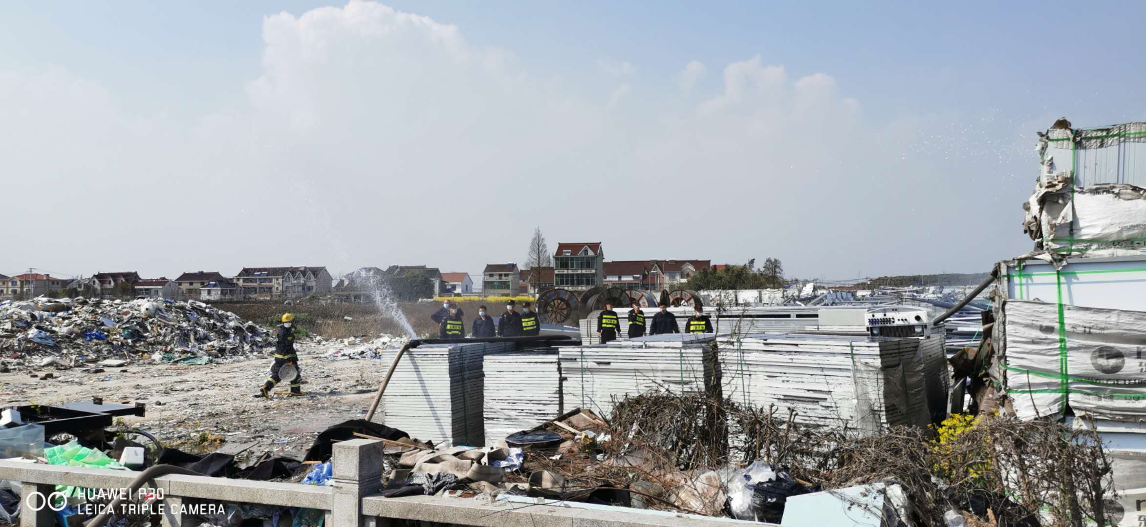 宗保隊員配合趕到現(xiàn)場的消防員全力展開滅火,火勢得到了有效控制,大火于14:45被撲滅。隨后,隊員們對現(xiàn)場進行全面清理,徹底排除堆場內(nèi)復(fù)燃的隱患。