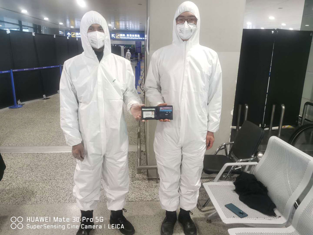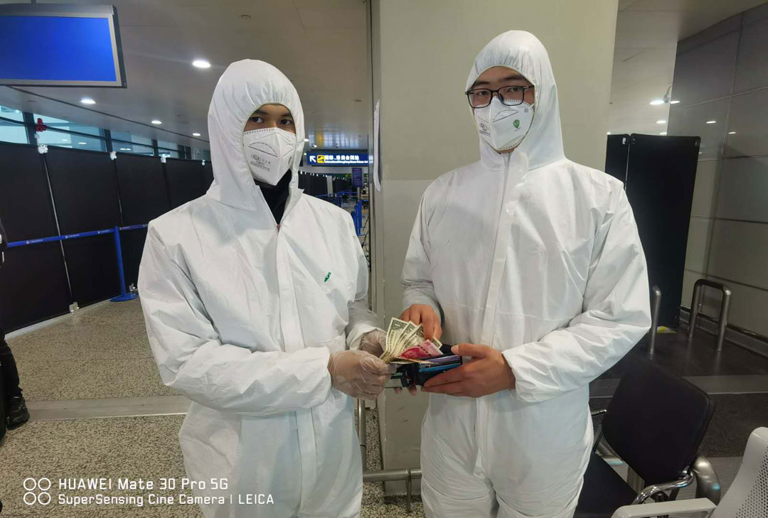 3月26日,宗保公司駐浦東國際機(jī)場(chǎng)口岸疫情防控一線的隊(duì)員郭文龍、王巖森在執(zhí)勤的過程中,撿到一個(gè)錢包。錢包內(nèi)裝有美金、人民幣、身份證以及10余張銀行卡等。