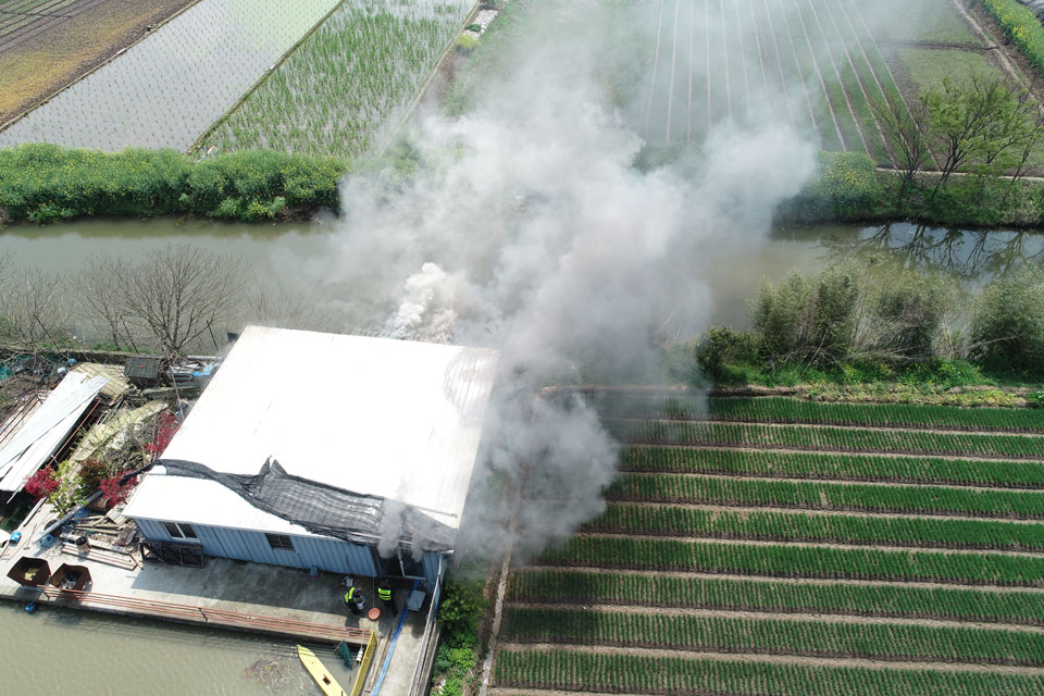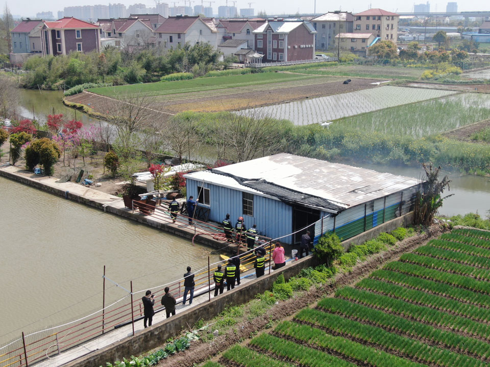 4月1日上午,宗保公司的無人機飛手王凱奇、王鵬飛在浦東新區(qū)宣橋鎮(zhèn)一地塊上空執(zhí)行無人機三維建模航拍任務(wù),無人機在返航過程中發(fā)現(xiàn)該地塊有一處臨時搭建的房子冒著濃煙?!安缓茫i飛,稻田旁邊的房子像是著火了,趕快通知地塊看守的隊員先去看看情況。”王凱奇一邊穩(wěn)穩(wěn)地操控著無人機,一邊焦急地對身邊的王鵬飛說。