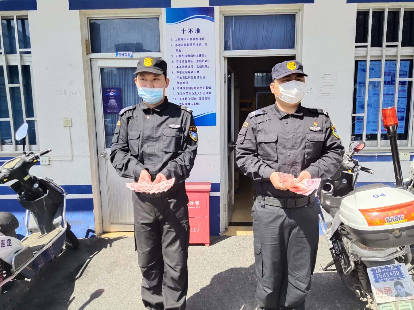 4月5日上午,張江派出所葉祖來(lái)警官和聯(lián)防隊(duì)衛(wèi)安大隊(duì)長(zhǎng),代表所領(lǐng)導(dǎo)對(duì)宗保公司駐孫橋輔警的全體人員,在疫情防控中所做的工作、所取得的成績(jī)給予充分肯定和感謝。特別表?yè)P(yáng)了在3月26日發(fā)現(xiàn)電瓶車盜竊案并協(xié)助抓獲犯罪嫌疑人的孫魁、紹輝兩名隊(duì)員,分別獎(jiǎng)勵(lì)現(xiàn)金1000元,并號(hào)召其他隊(duì)員向他們學(xué)習(xí)。